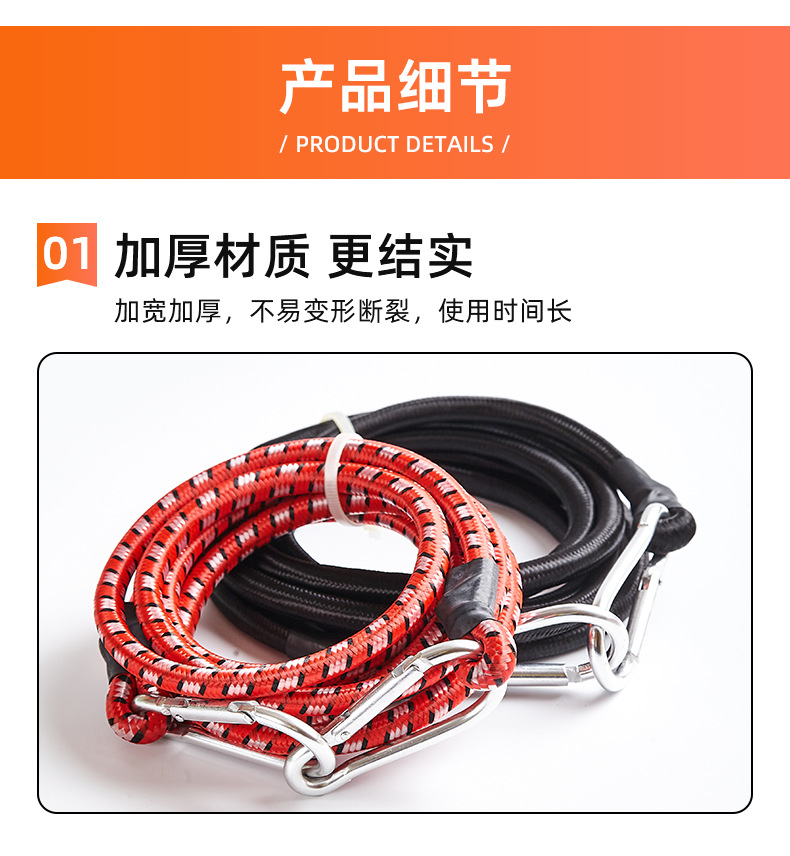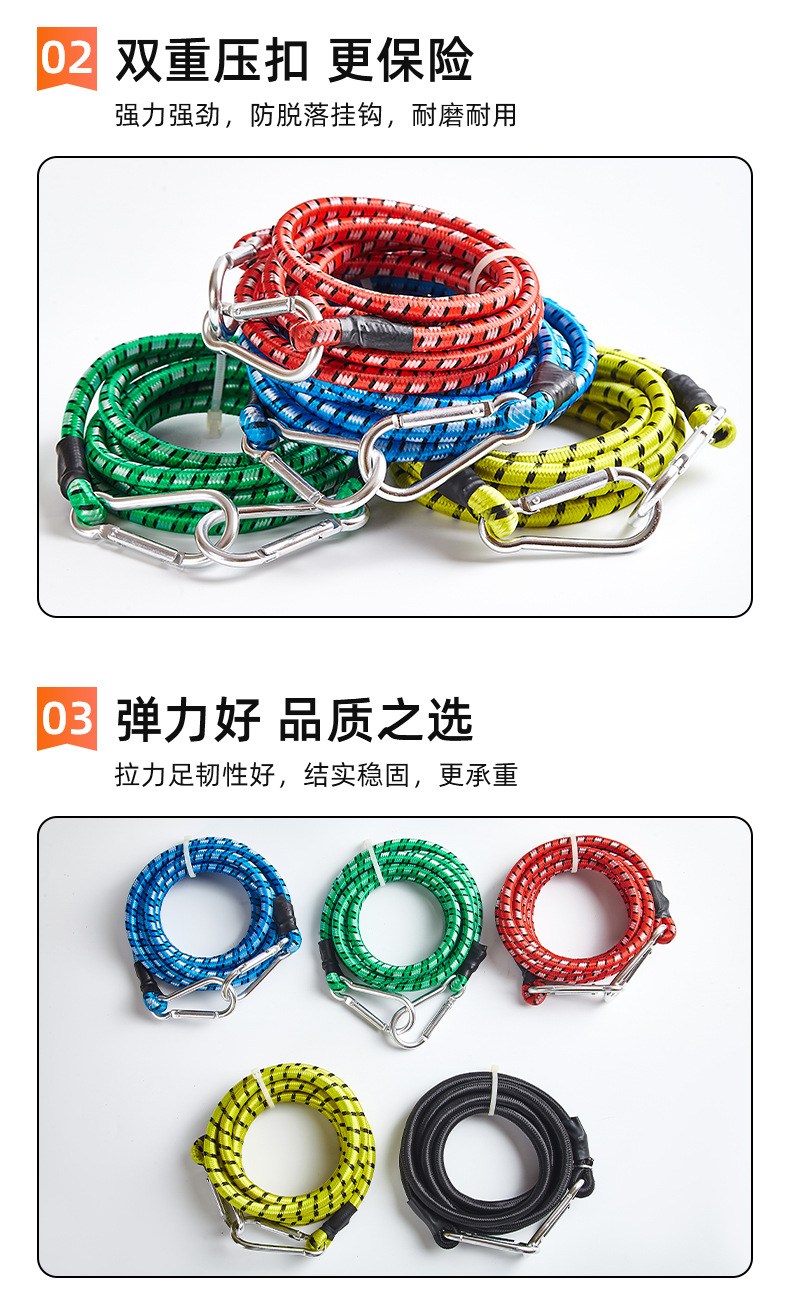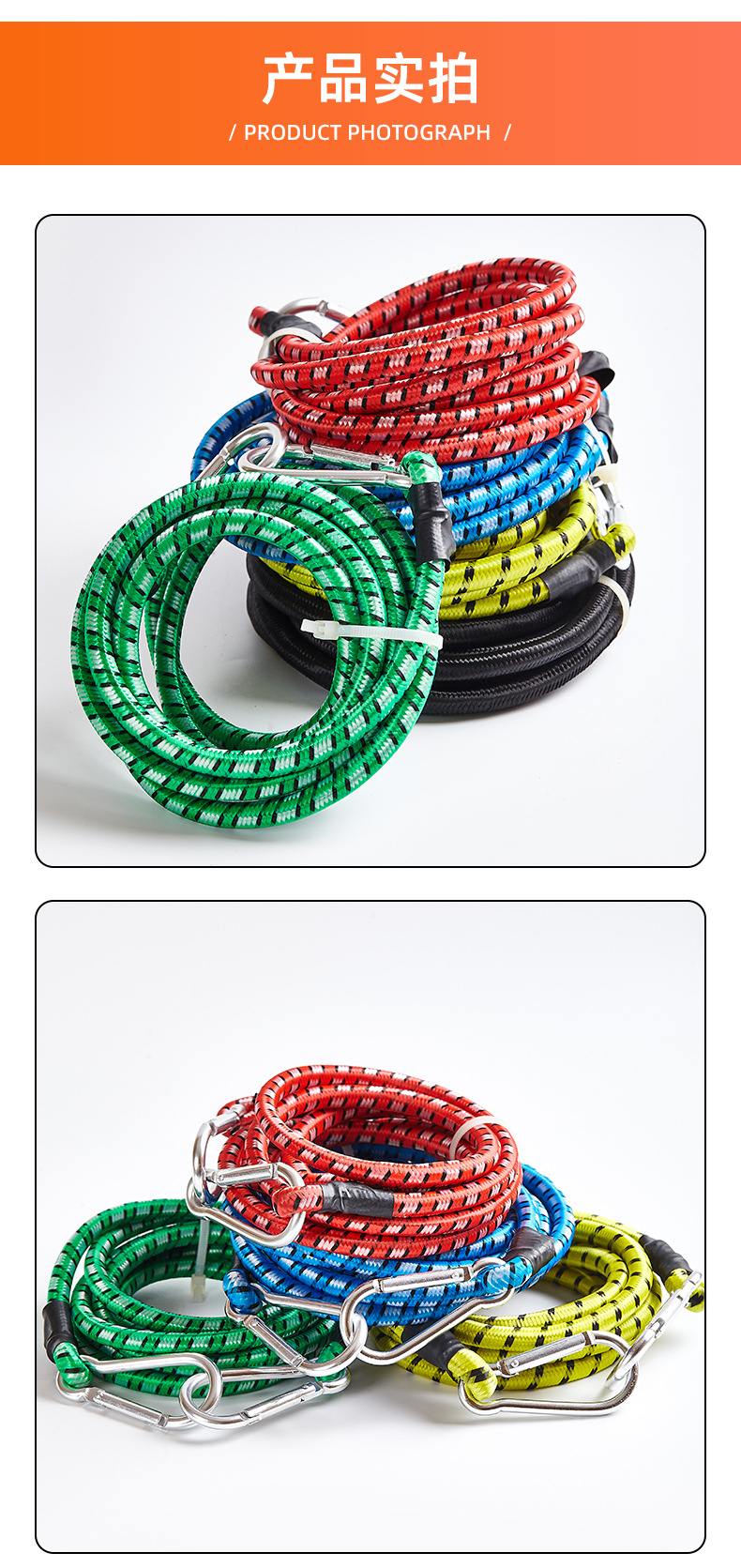 厚みのあるオートバイ電気自動車高弾性ラテックスストラップ自転車カラビナ弾性荷物ストラップロープ
