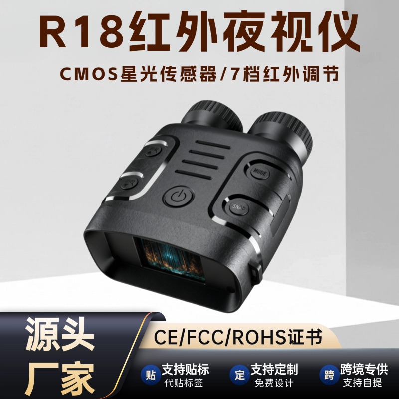 厂家批发 超清大屏昼夜两用全黑可拍照录像高清R18红外双筒夜视仪