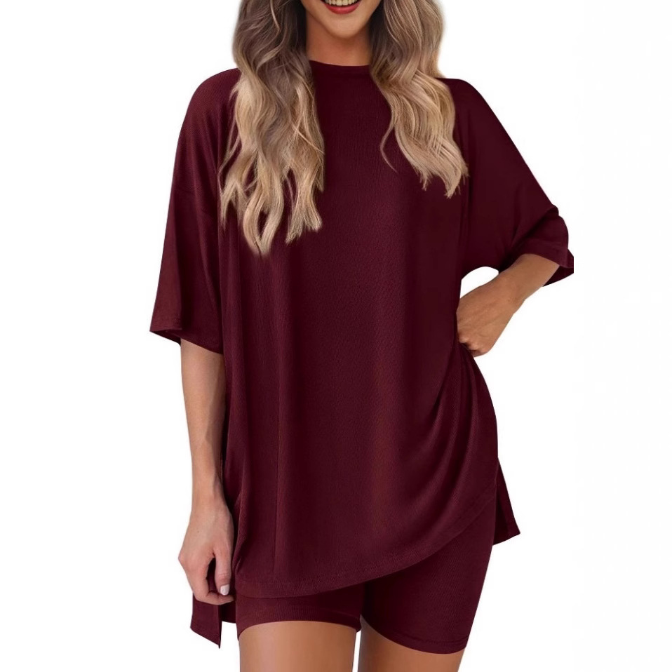 2025 ヨーロッパとアメリカのクロスボーダー Amazon 独立ステーション夏の人気カジュアルスーツバット半袖 T シャツ巾着ショート