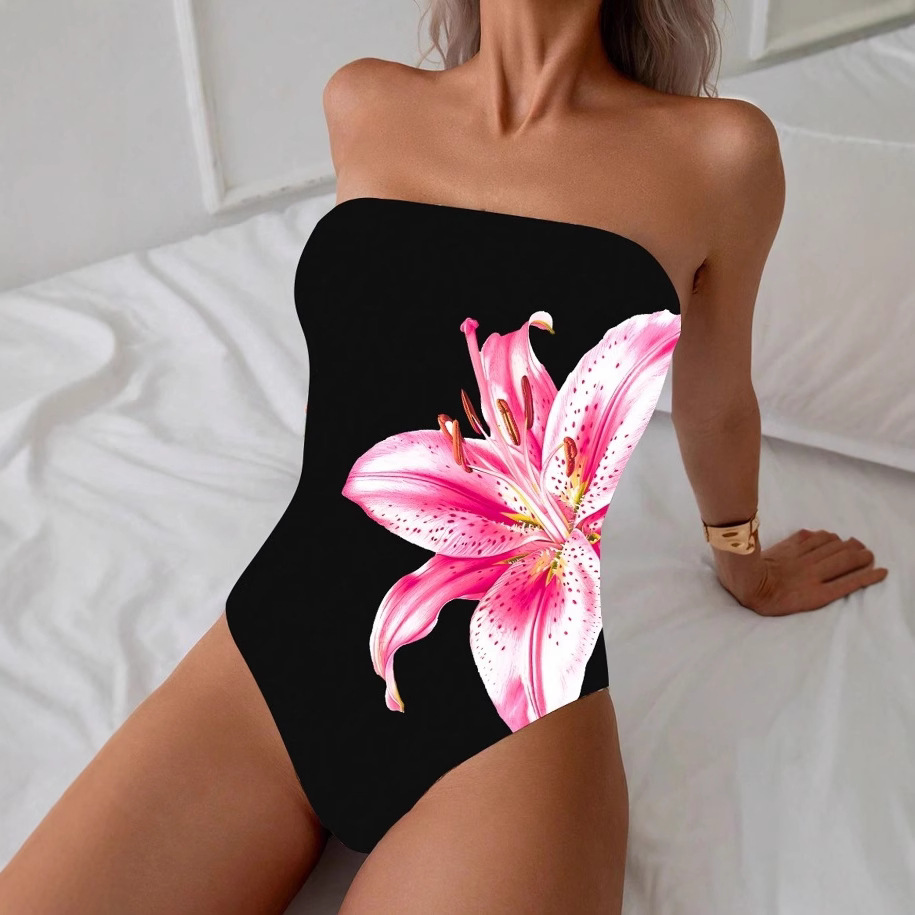 2025クロスボーダー欧米アマゾン新型セクシープリント魅力百合定版プリント連体服