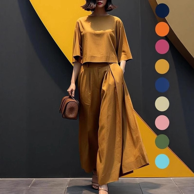 2025年新作、豊富なカラーとサイズ展開、欧米向け越境EC向けレディースウェア、アマゾン向けハイウエストで着痩せ効果のあるドレープ感のあるカジュアルパンツ