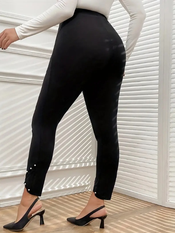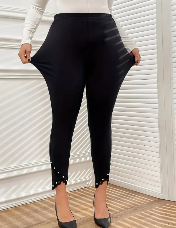 2025春新作韓国風レギンスアウターウェア薄いパール装飾レースステッチ女性鉛筆小足9点