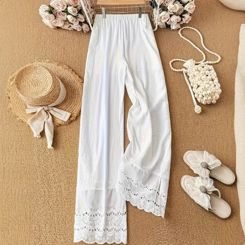 2025夏の新型の大きいサイズの甘い少女は重ね着して多層のレースの刺繍のストレートズボンを着てズボンを打ちます。