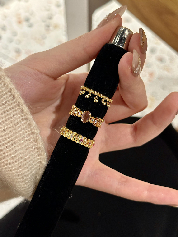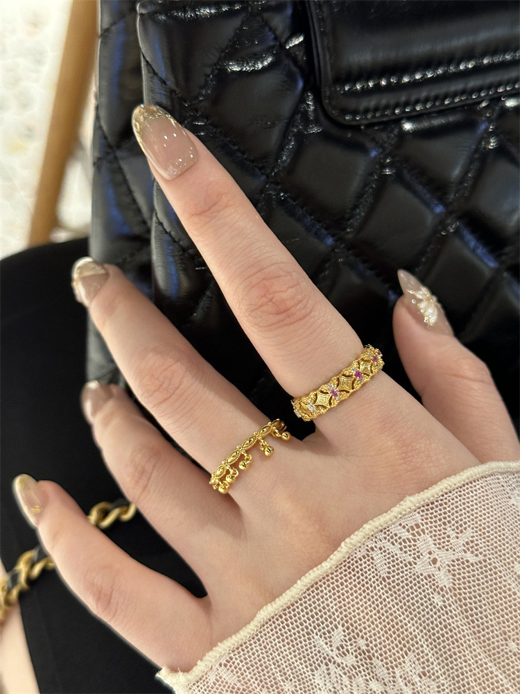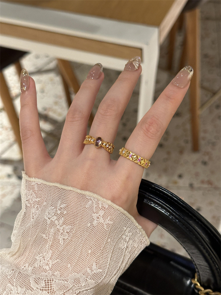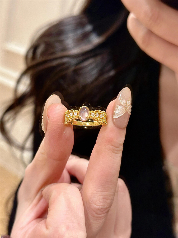 フランスの軽い豪華な透かし彫りの王冠の指輪の女性のinsの豪華な高級感の指環のファッション的な質感の食の指の指輪
