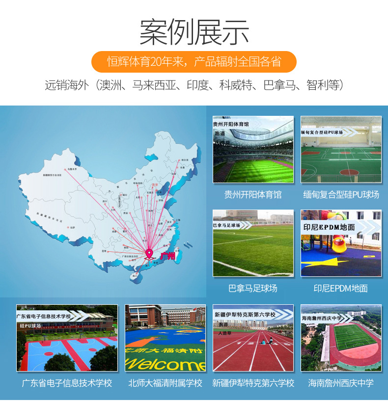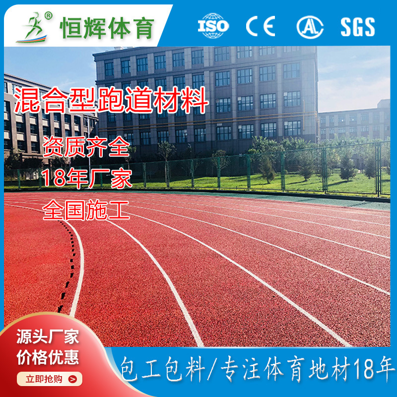 运动操场硅pu球场塑胶跑道材料epdm塑胶跑道混合型预制型跑道施工