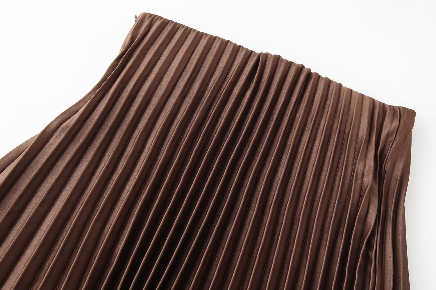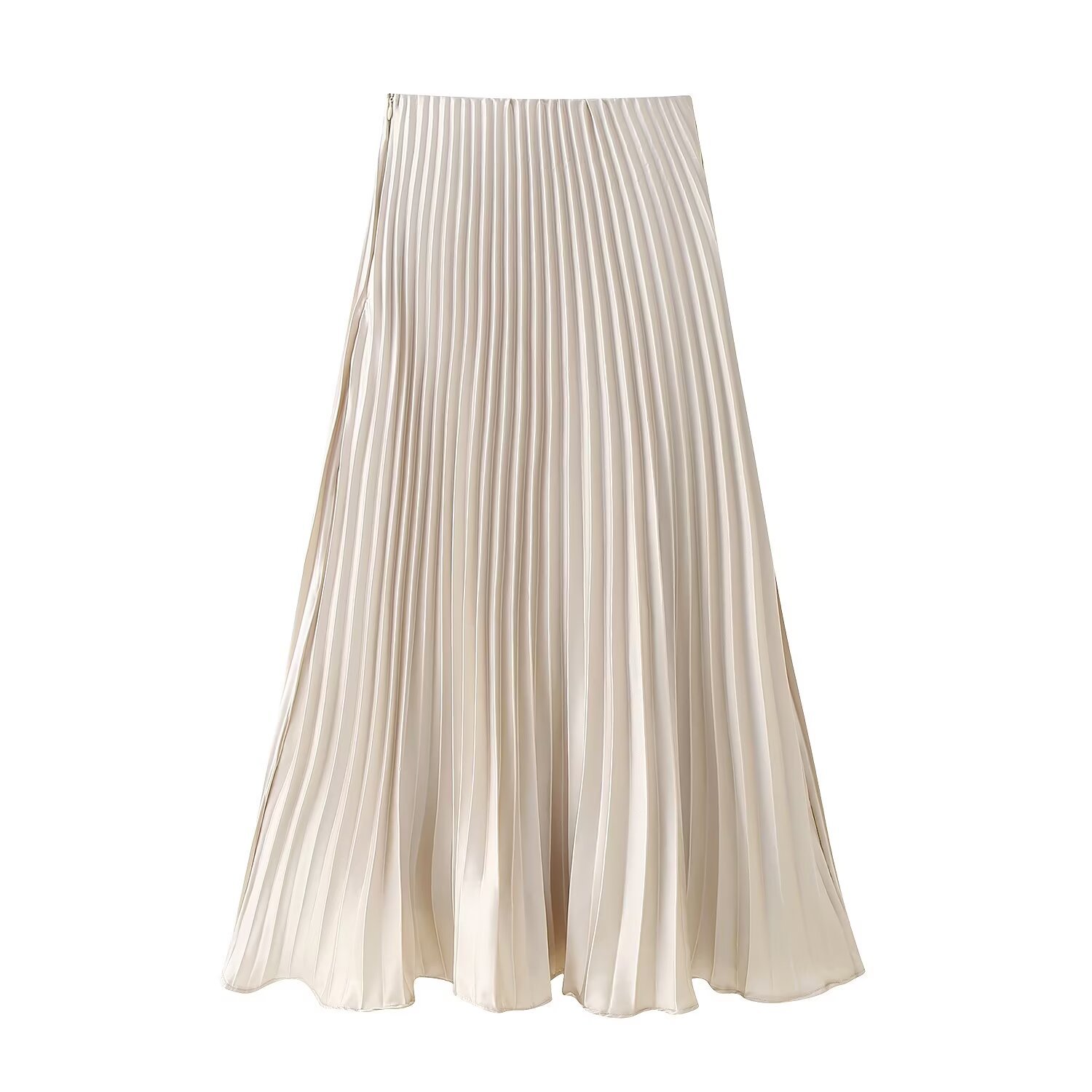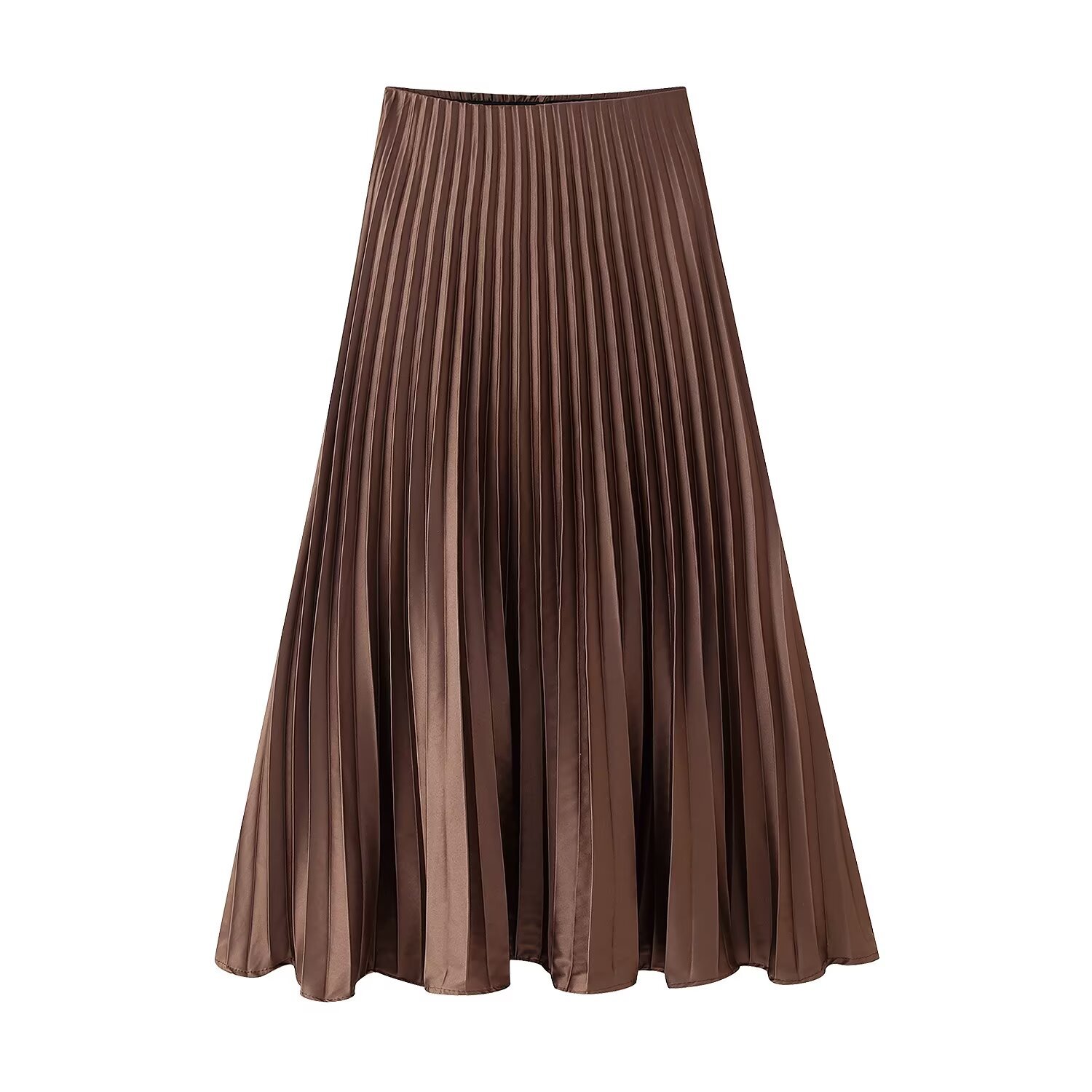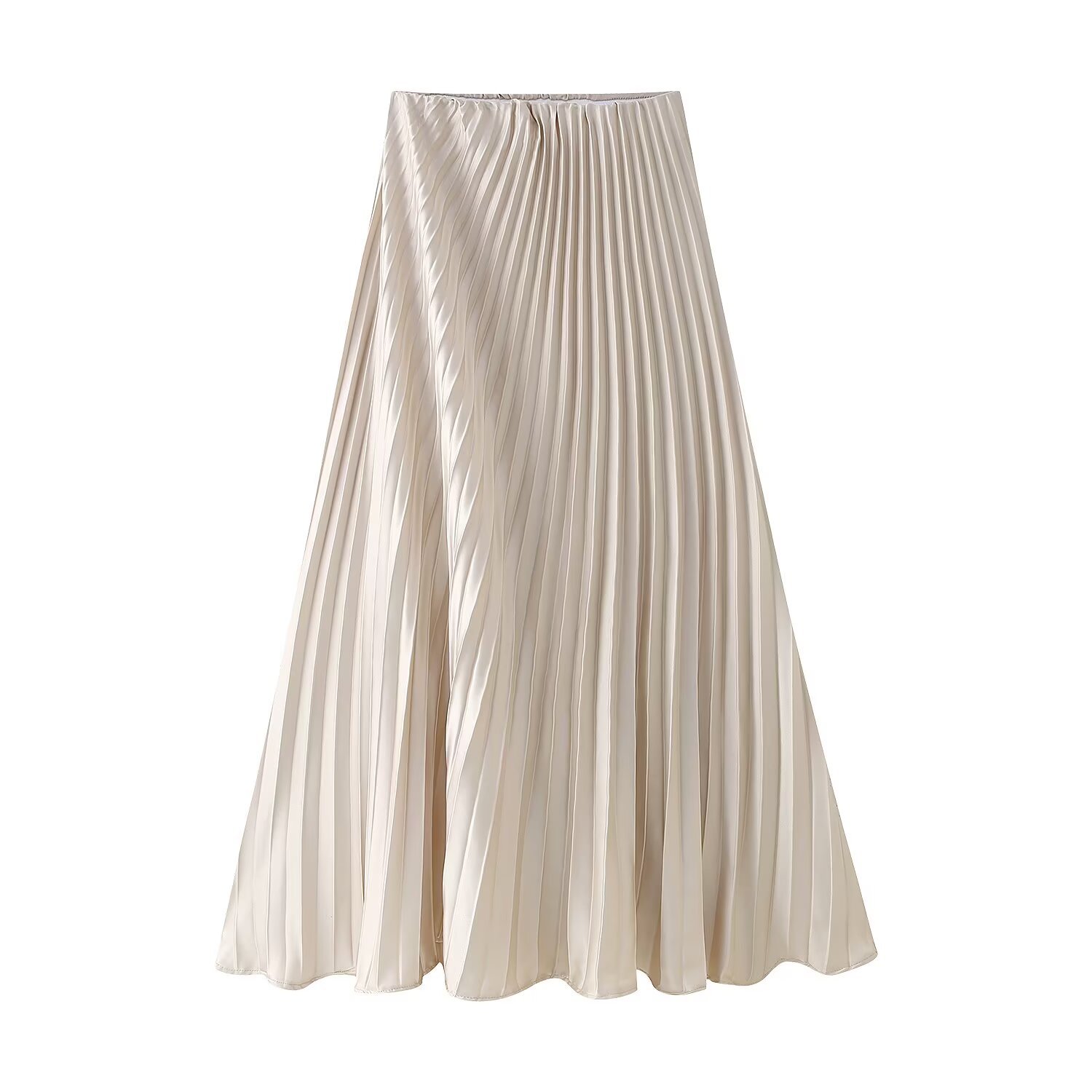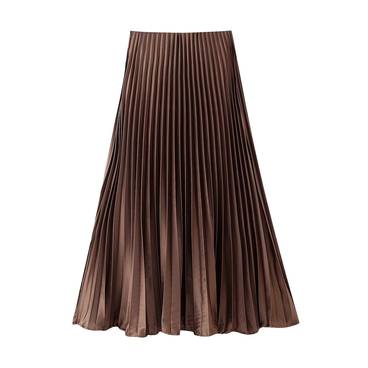 w0クロスボーダーテクスチャー2025ミディレディースウェア013新作気質春17プリーツスカートヨーロッパとアメリカのシルクサテン