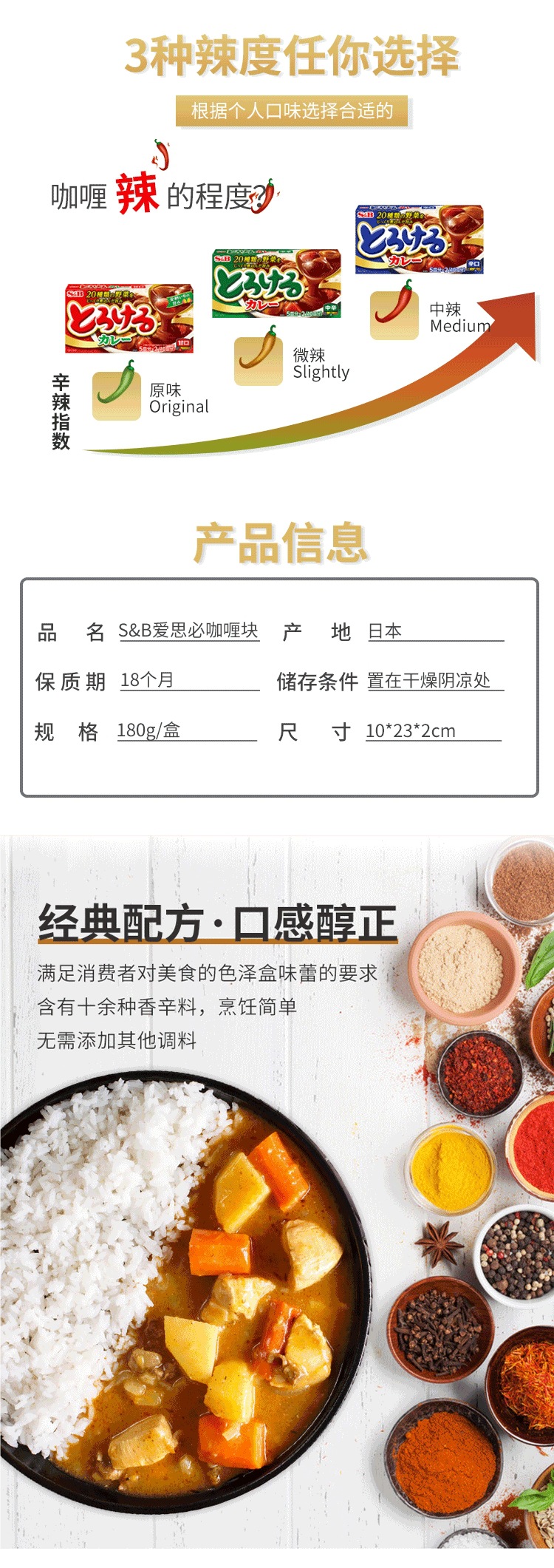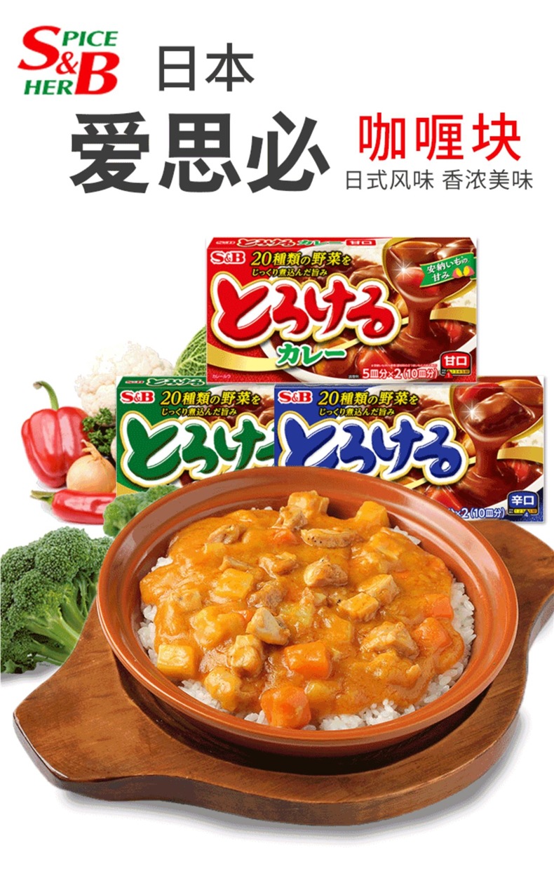 2件包邮日本进口SB咖喱块 爱思必日式咖喱砖鸡肉饭料酱原味微辣