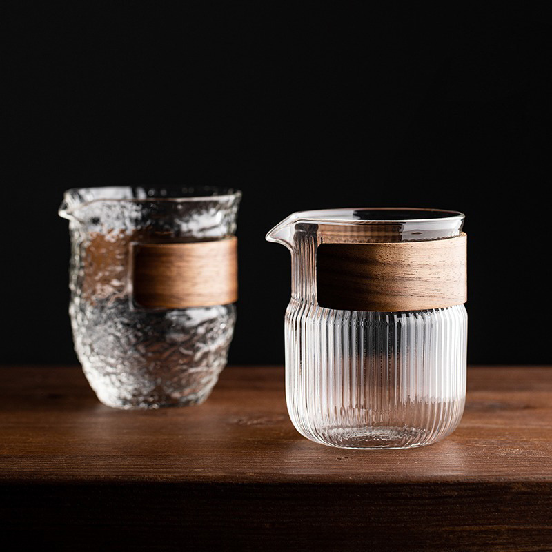 高硼珪酸ガラス製鷹嘴公道杯、木製リング付き主人公道杯、家庭用功夫茶杯、茶器、耐熱