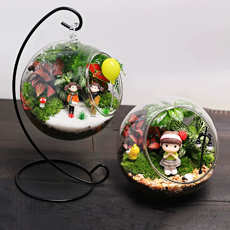 マイクロランドスケープ多肉植物造園ボトル diy クリエイティブ生態ボトル透明鉄フレームぶら下げ斜め口苔ボトル水耕栽培