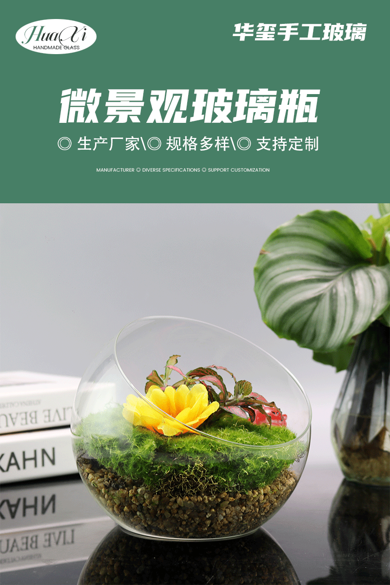 大斜口微景观diy苔藓多肉生态瓶创意盆栽造景瓶透明玻璃花瓶绿植