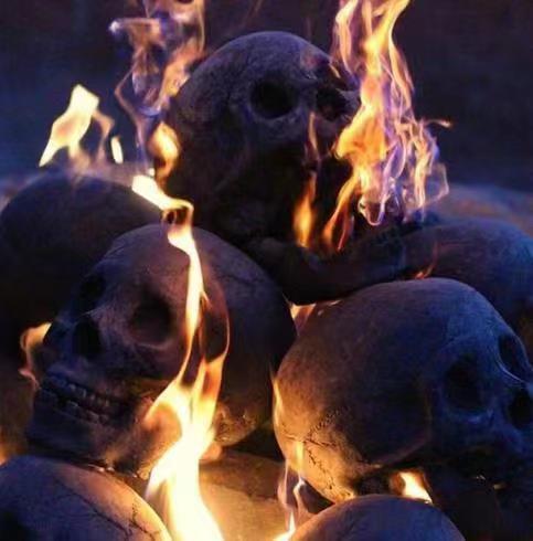跨境专供/仿真骷髅头道具/万圣节火炉烧烤派对装饰/恐怖陶瓷摆件