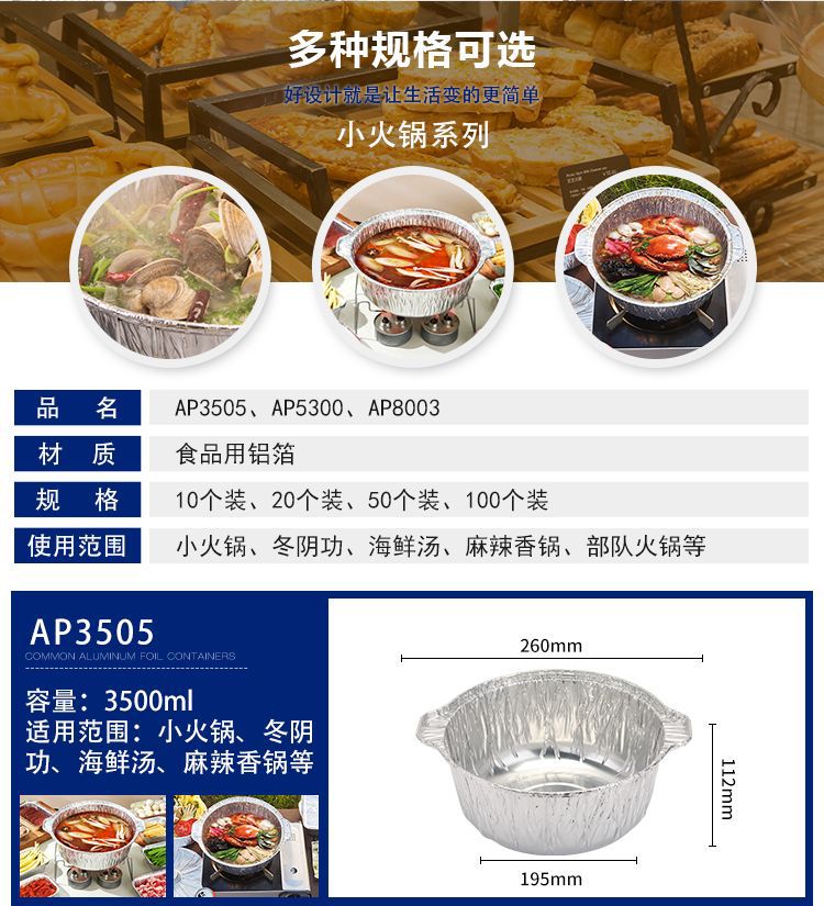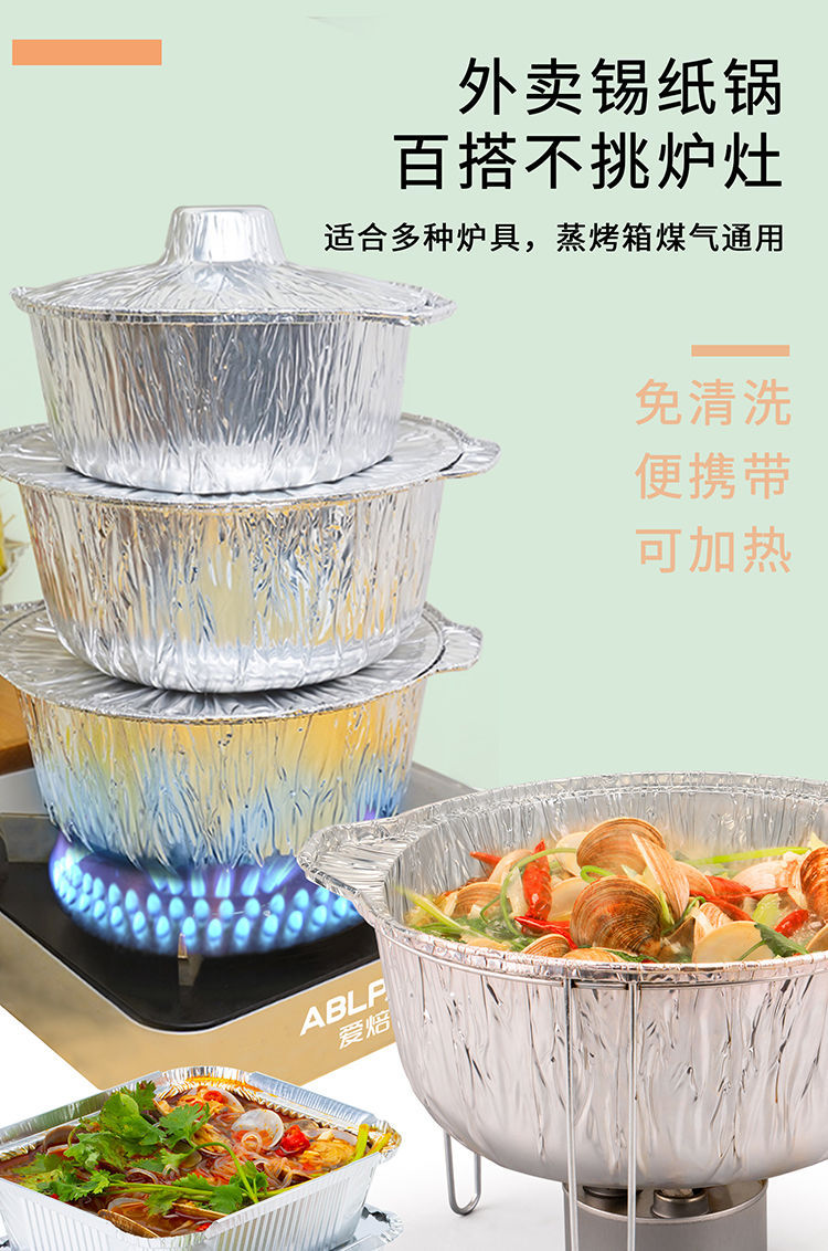 使い捨て鍋テイクアウト包装箱アルミ箔鍋加熱可能な丸型乾鍋アルコールストーブアルミ箔大容量メーカー