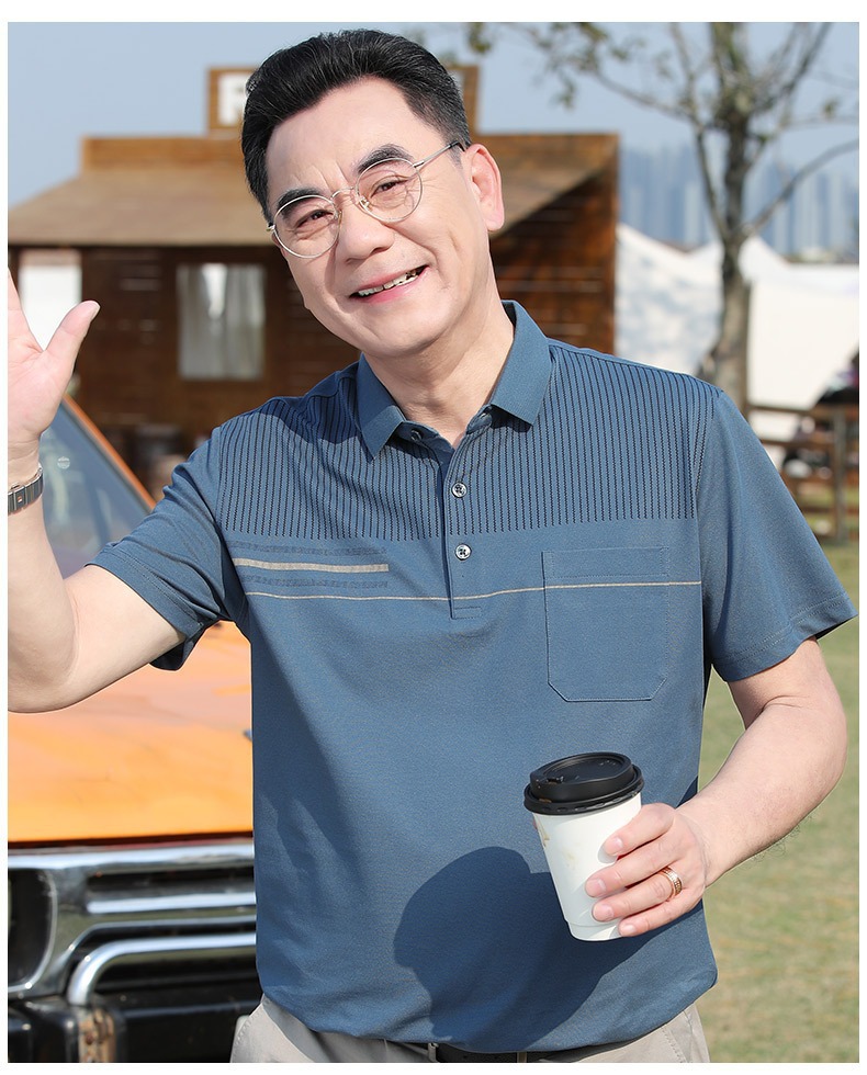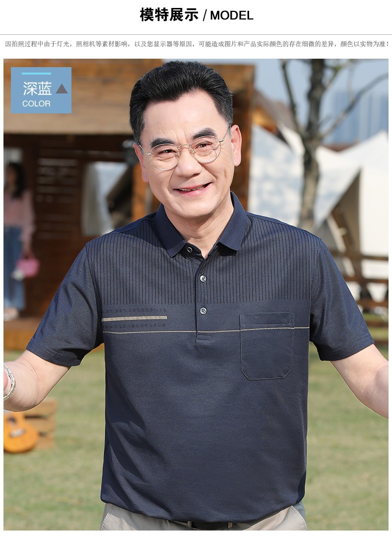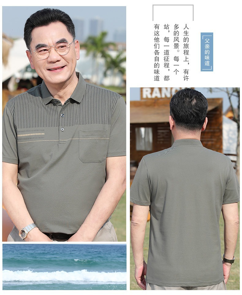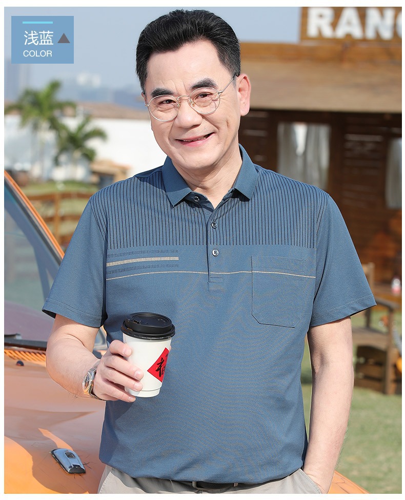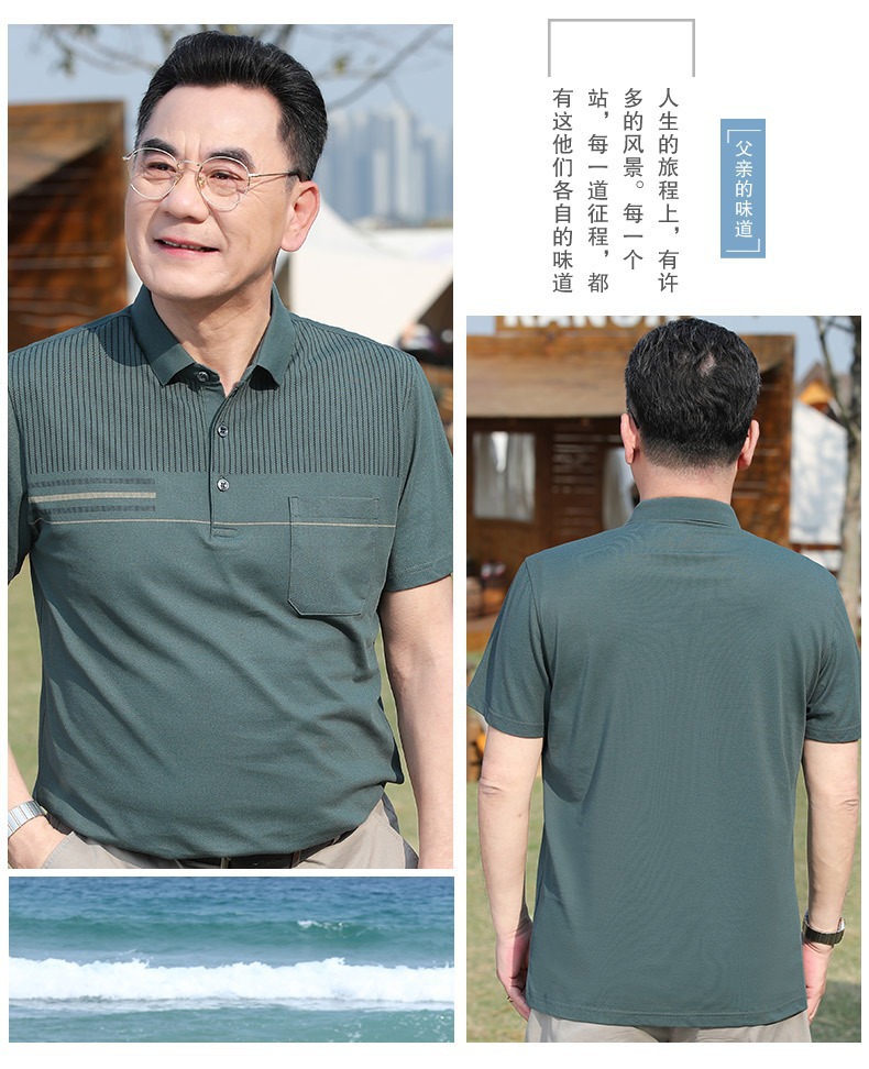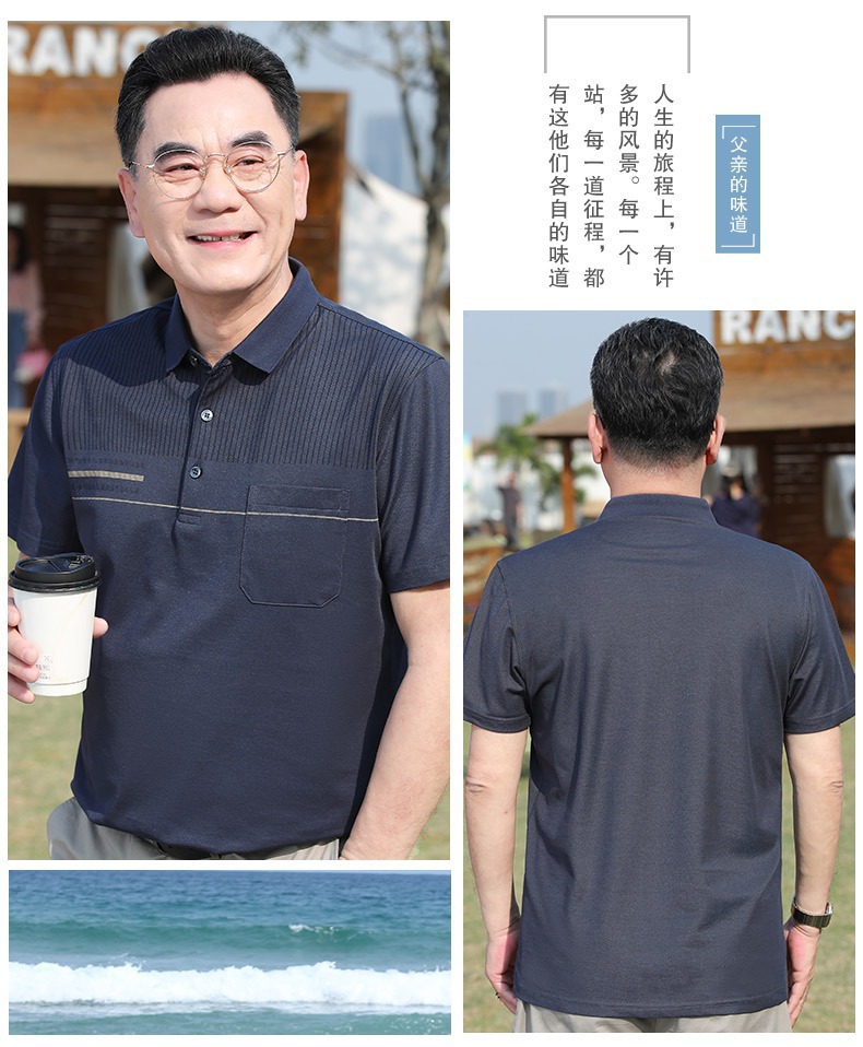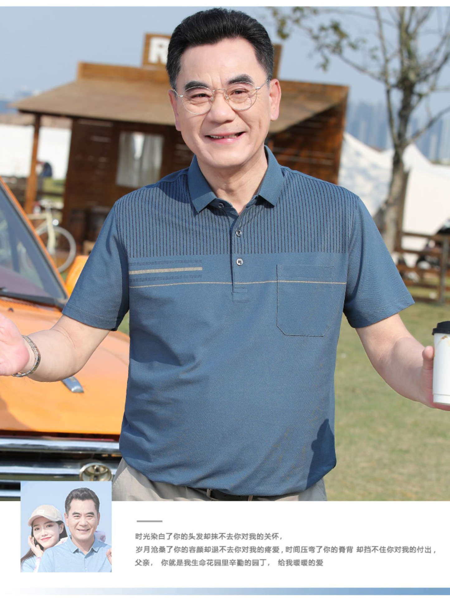 お父さん夏服半袖tシャツ2025夏新作メンズ薄手ポロシャツ中高年ゆったり折り襟tシャツ男