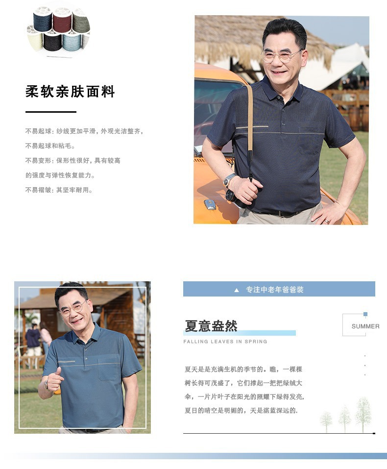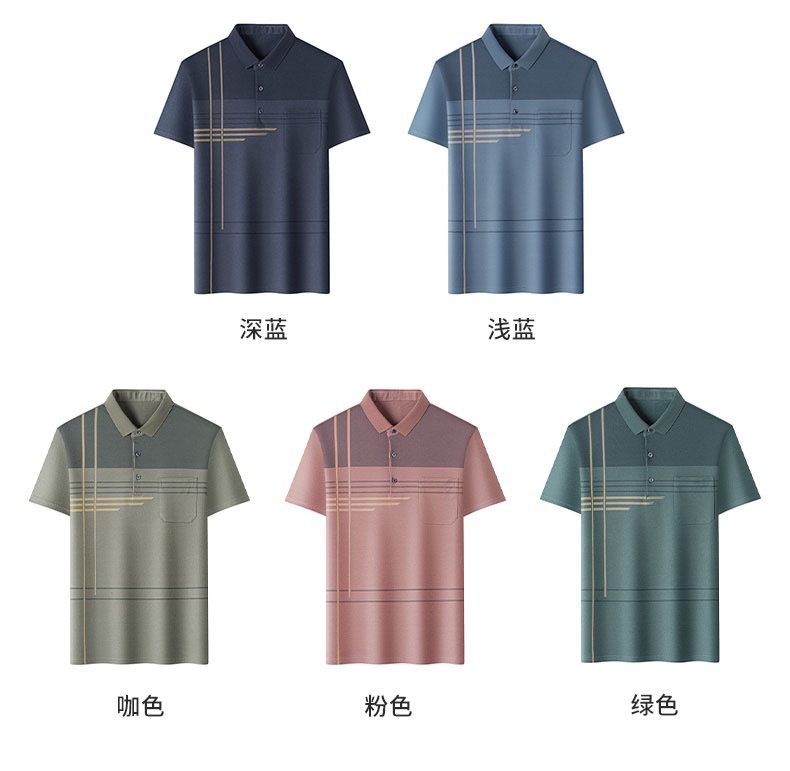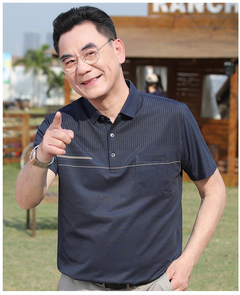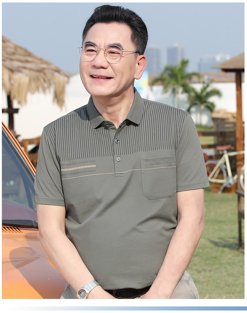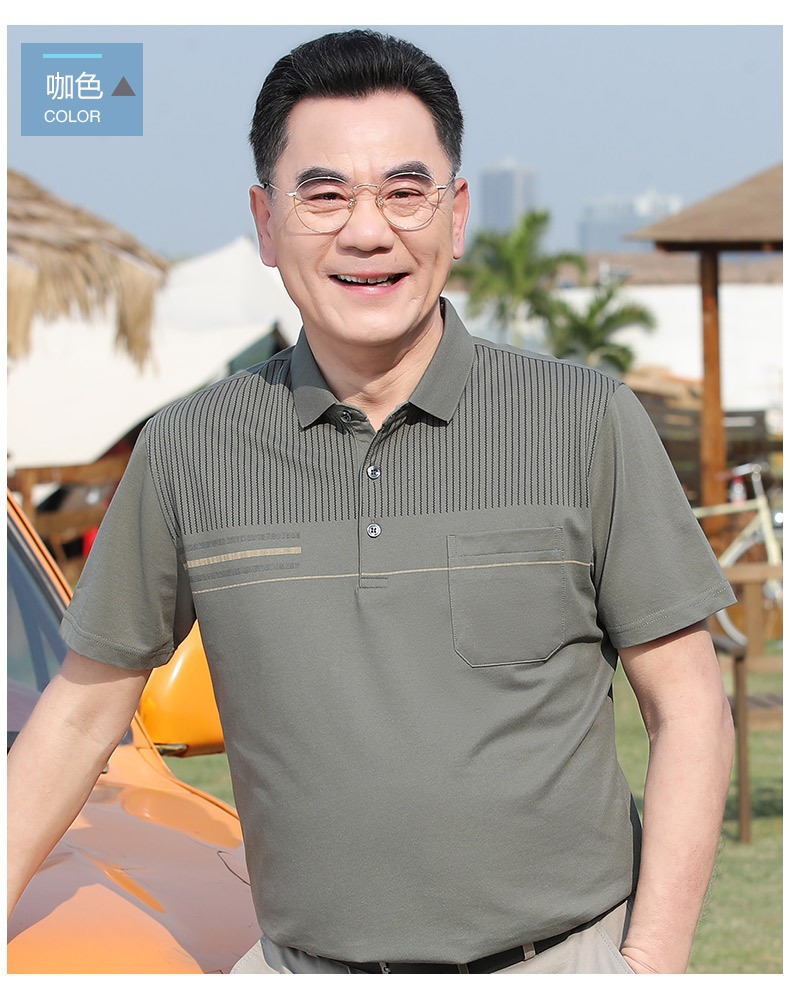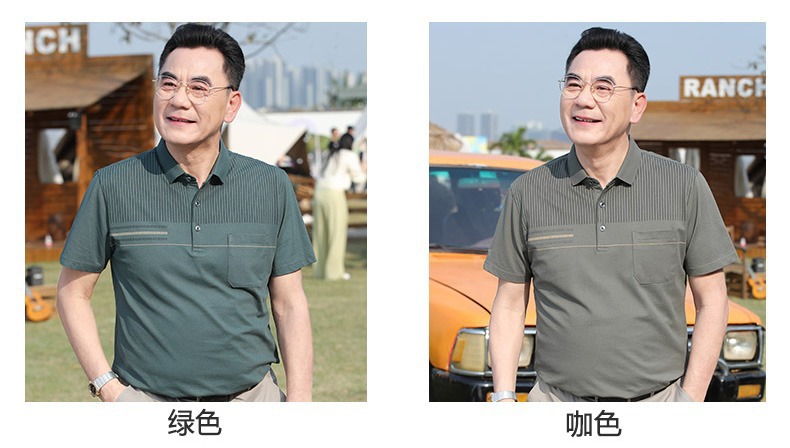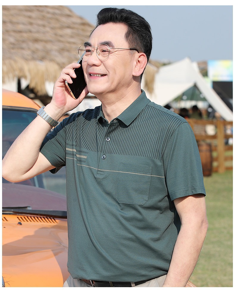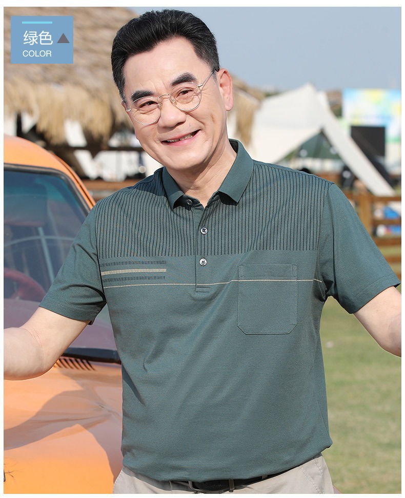 お父さん夏服半袖tシャツ2025夏新作メンズ薄手ポロシャツ中高年ゆったり折り襟tシャツ男