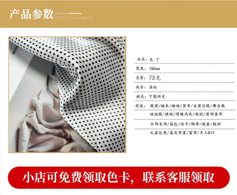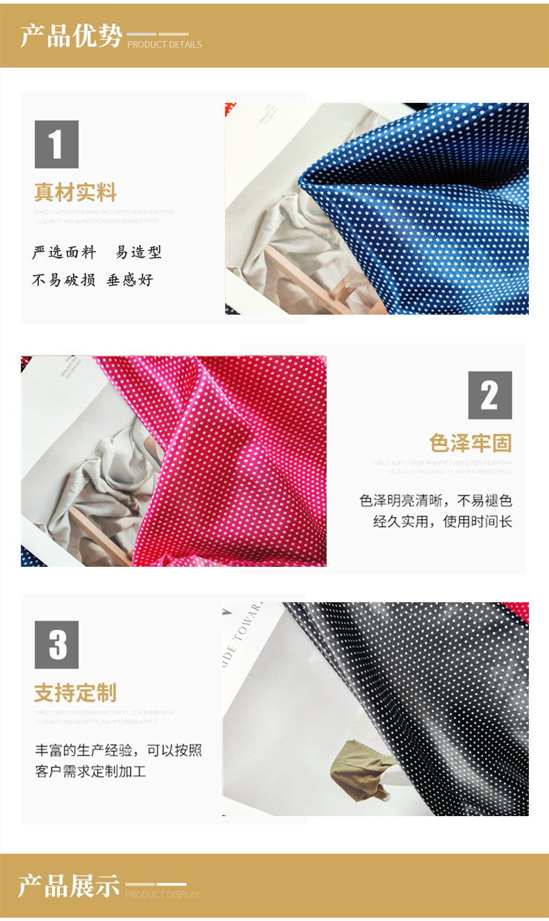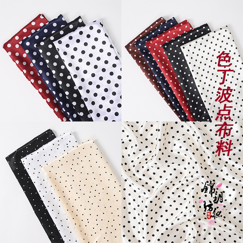 圆点波点布料缎面色丁印花连衣裙服装里布不易皱易打理飘带家居服