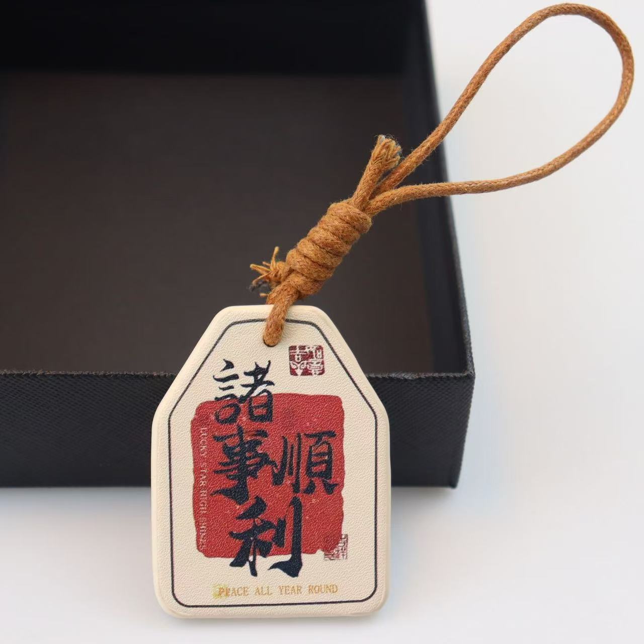 人気のニッチな中国風ペンダントレザー、富と幸運を引き寄せるサイン付き、手作りキーホルダー