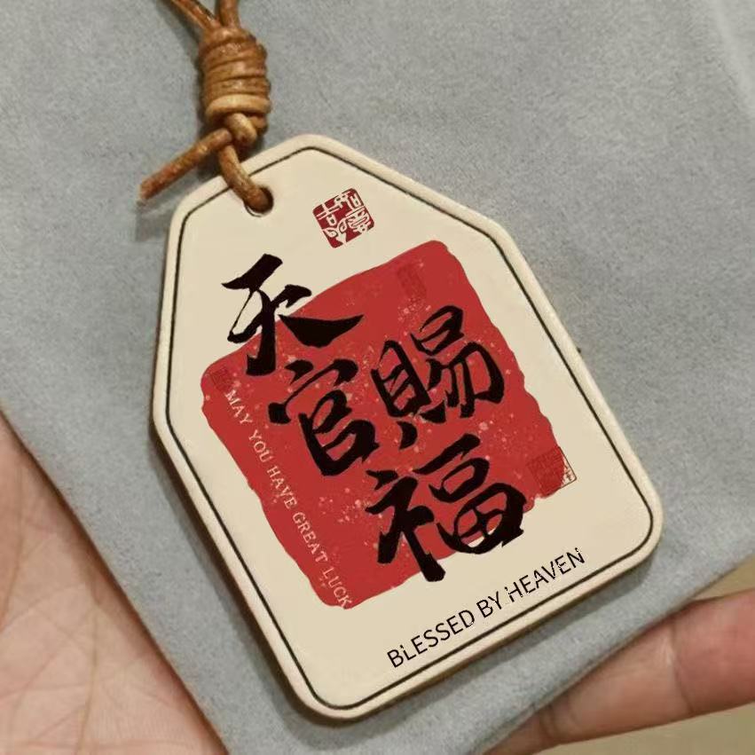 Douyinの人気ニッチ「Gong Xi Fa Cai」中国風レザーペンダント、幸運と富を呼ぶカップルの手作りキーホルダー
