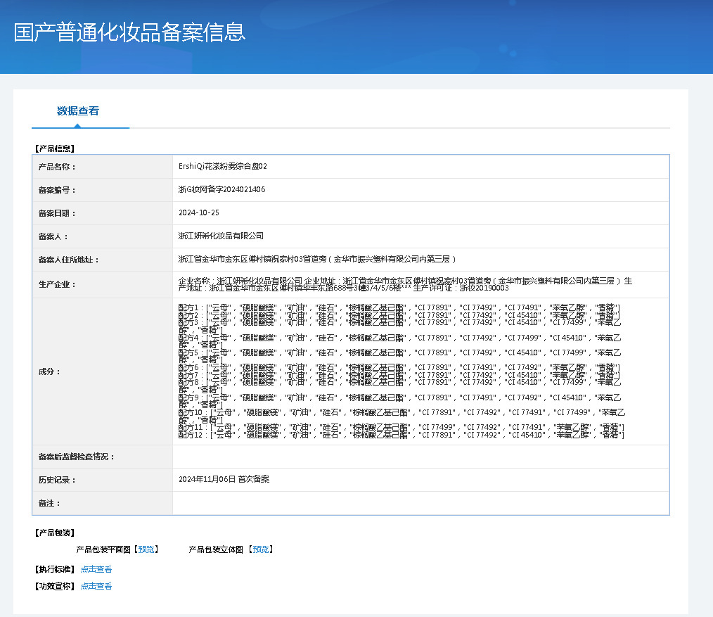 非特殊化粧品登録証番号 浙江Gメイクアップネットワーク準備番号2024021406