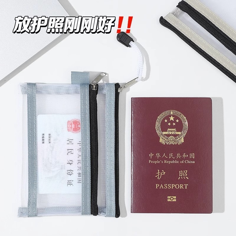 双层网纱收纳袋便携驾驶证收纳包护照户口本拉链袋银行卡透明卡包