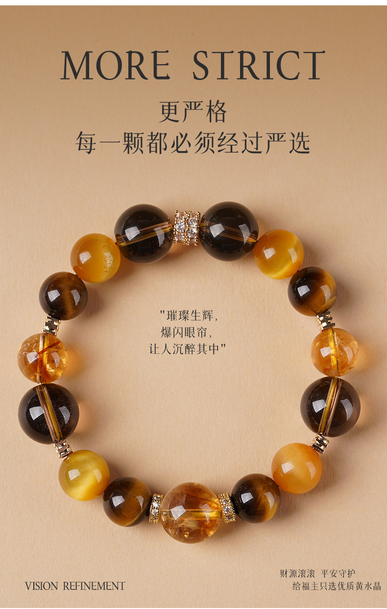 天然金発晶黄水晶ブレスレット女性大衆デザイン高級感新中国式いちご晶福牌手串文游