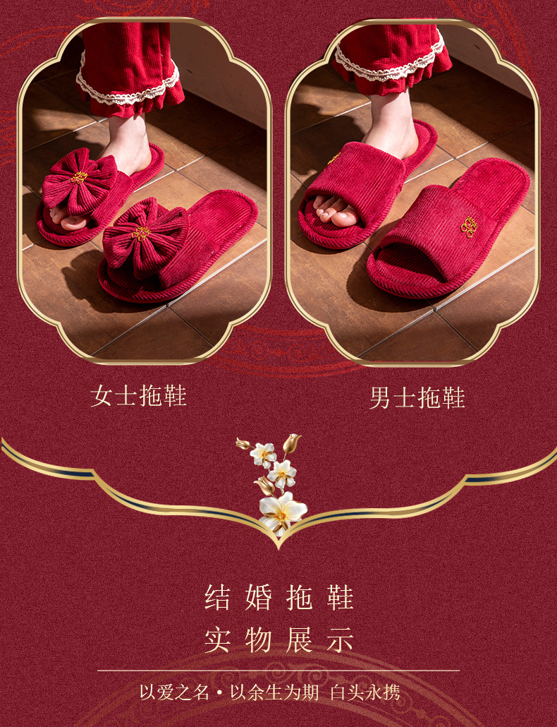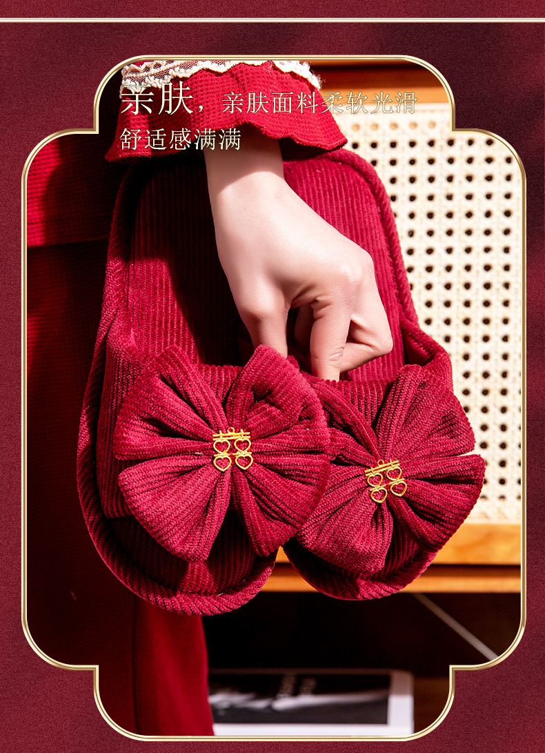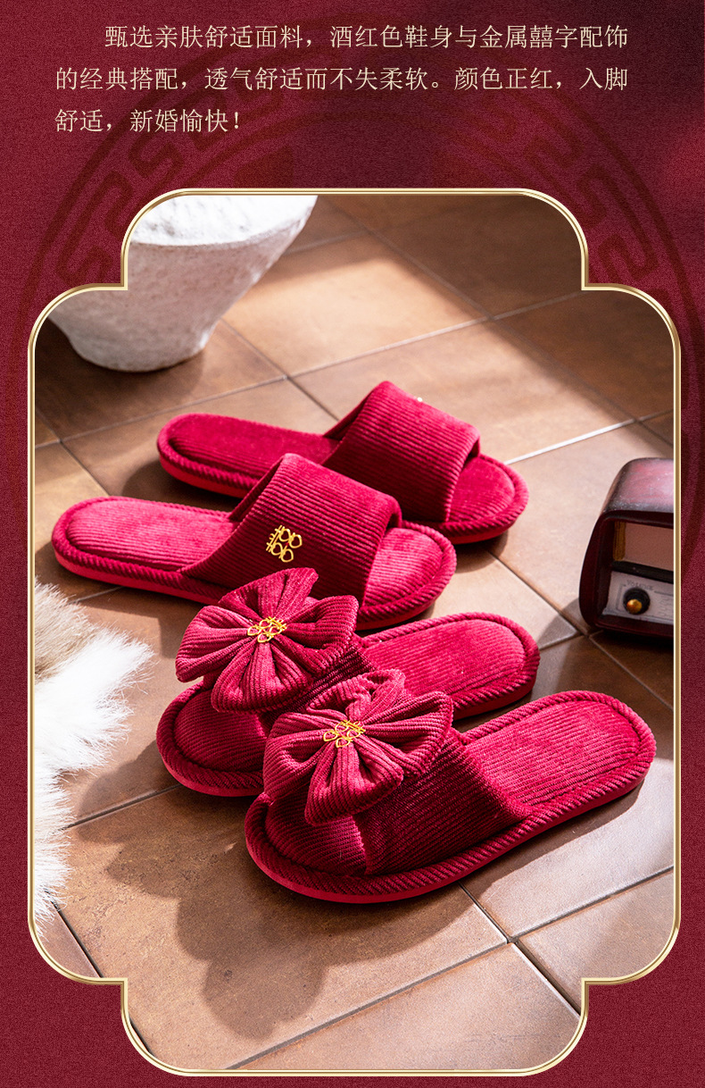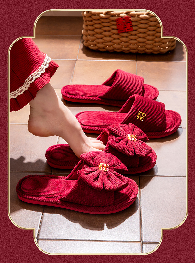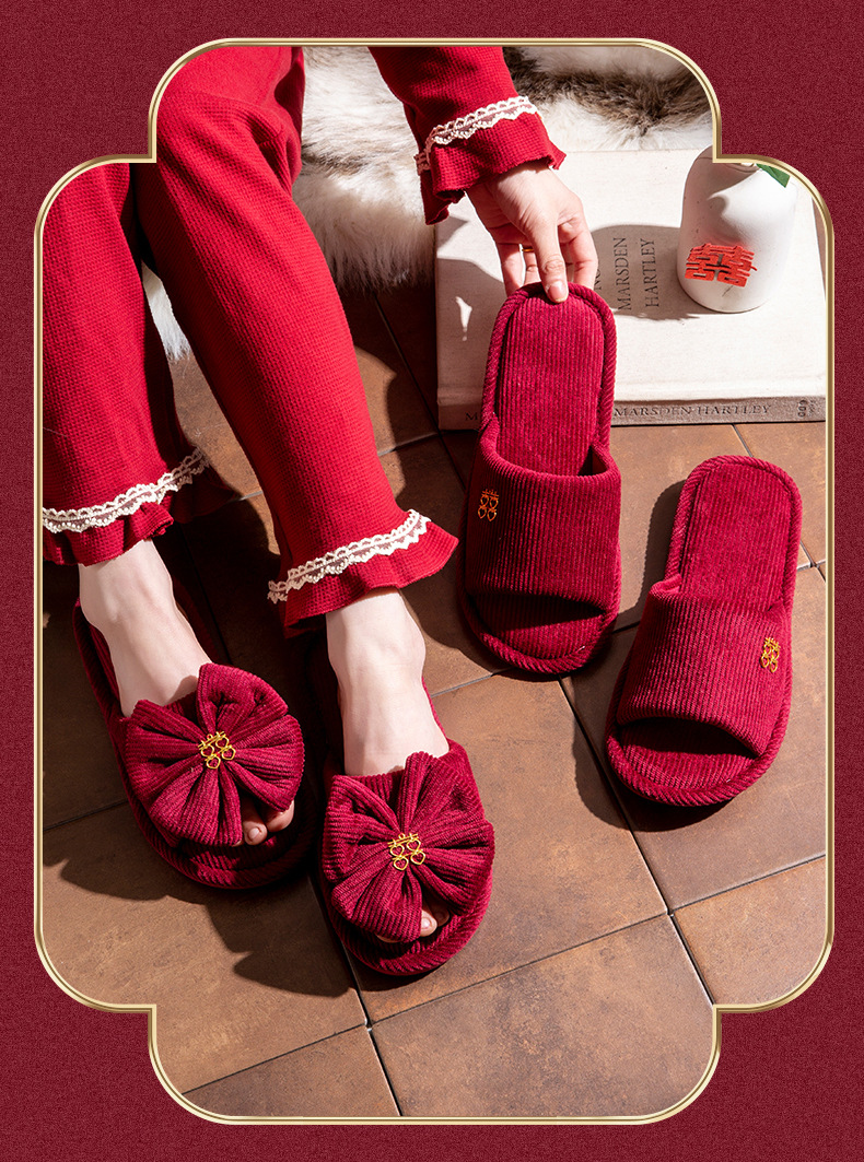 结婚スリッパお祝い赤ペア冬カップル新婚冬ホーム花嫁结婚式持参スリッパ