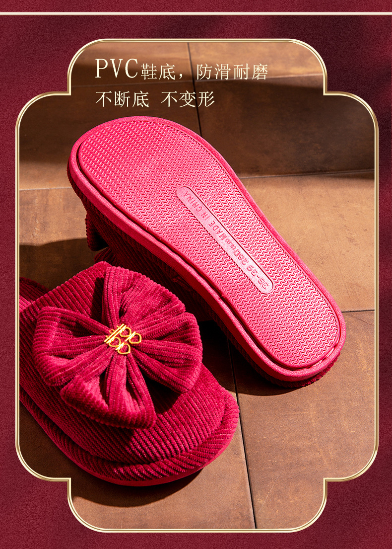 スリッパ结婚カップル新しい结婚式お祝い赤屋内滑り止めホーム花嫁结婚式秋冬コットンスリッパ