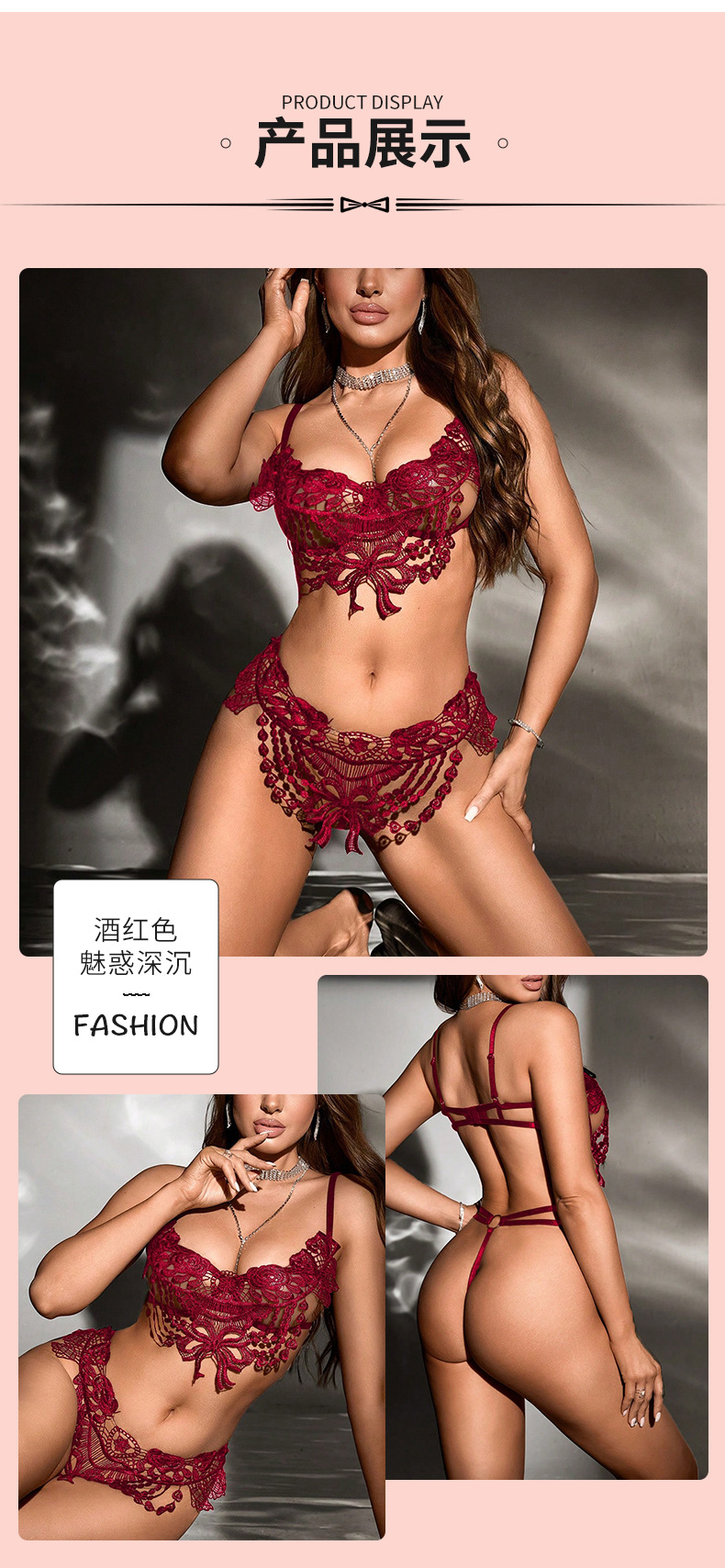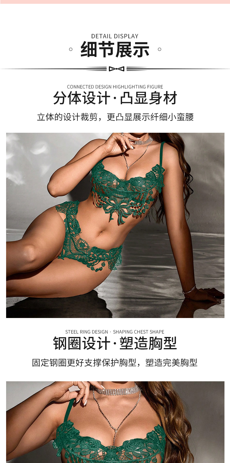 純粋な欲望の透かし彫りセクシーなフィッシュボーンブラセット、シェイプアップバンドで魅せる、ヨーロッパとアメリカのセクシーなランジェリーセット