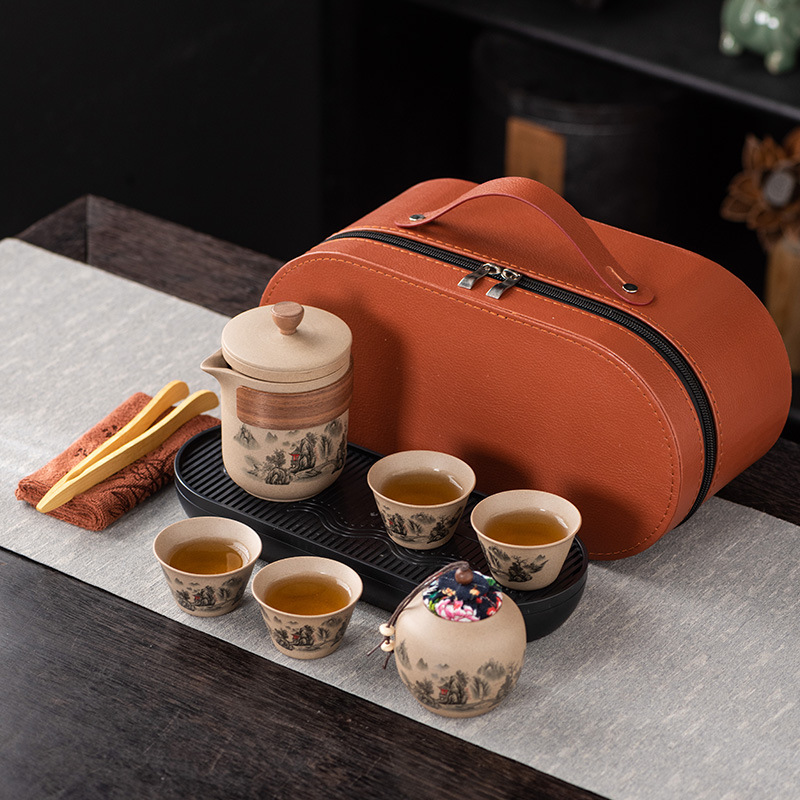 トラベルティーセット、便利なティーポット、粗陶器のクイックティーカップ、父の日、中秋節、会社年次総会イベントの記念品