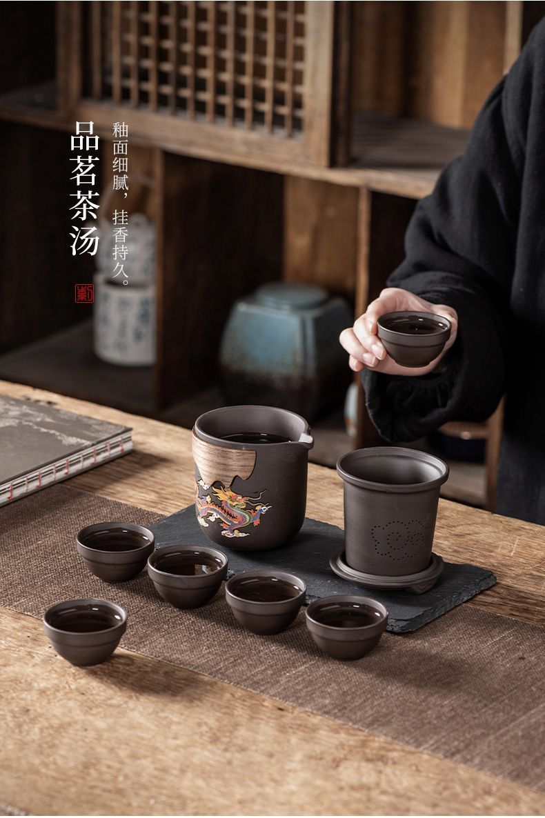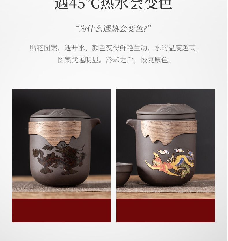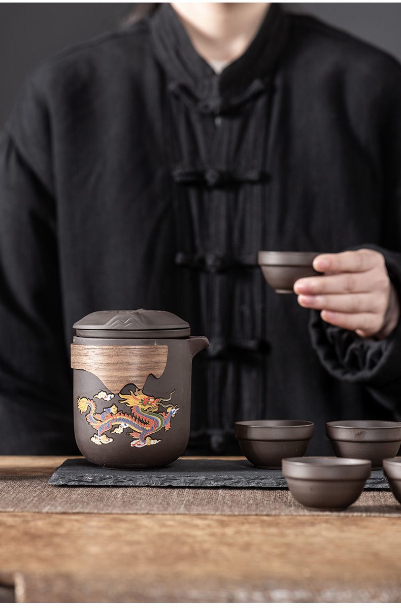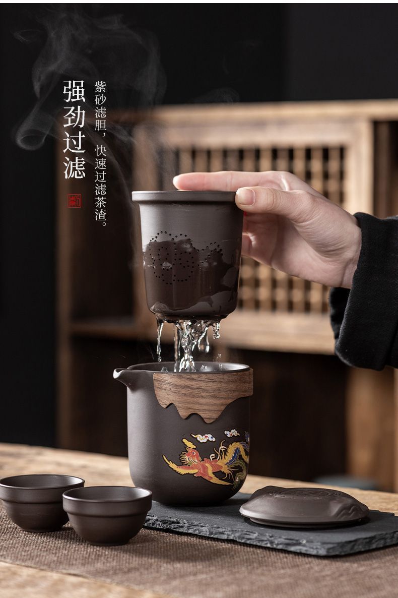 トラベルティーセット 紫砂ティーポット カメレオンフェニックス 1ポット6カップ 会社イベント 実用的な開店祝いのお土産