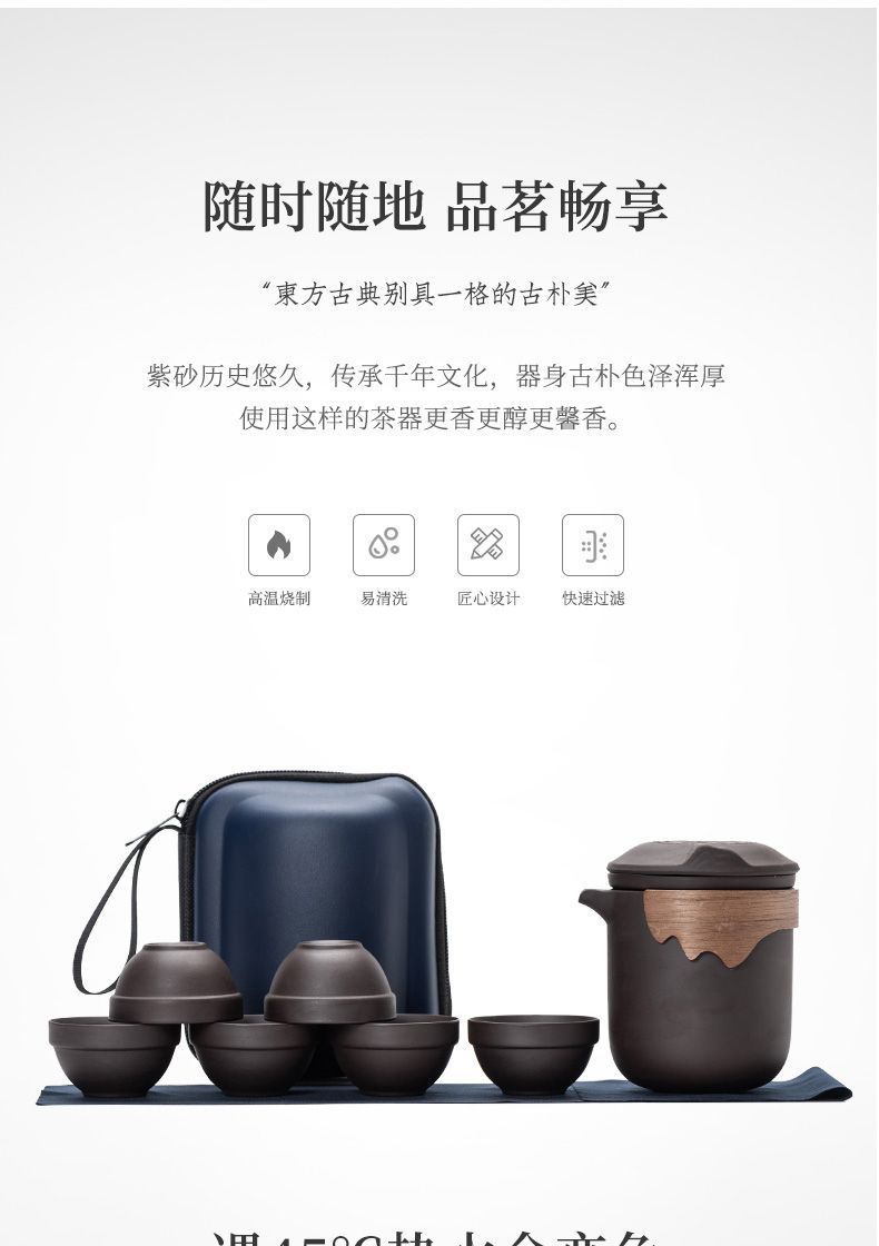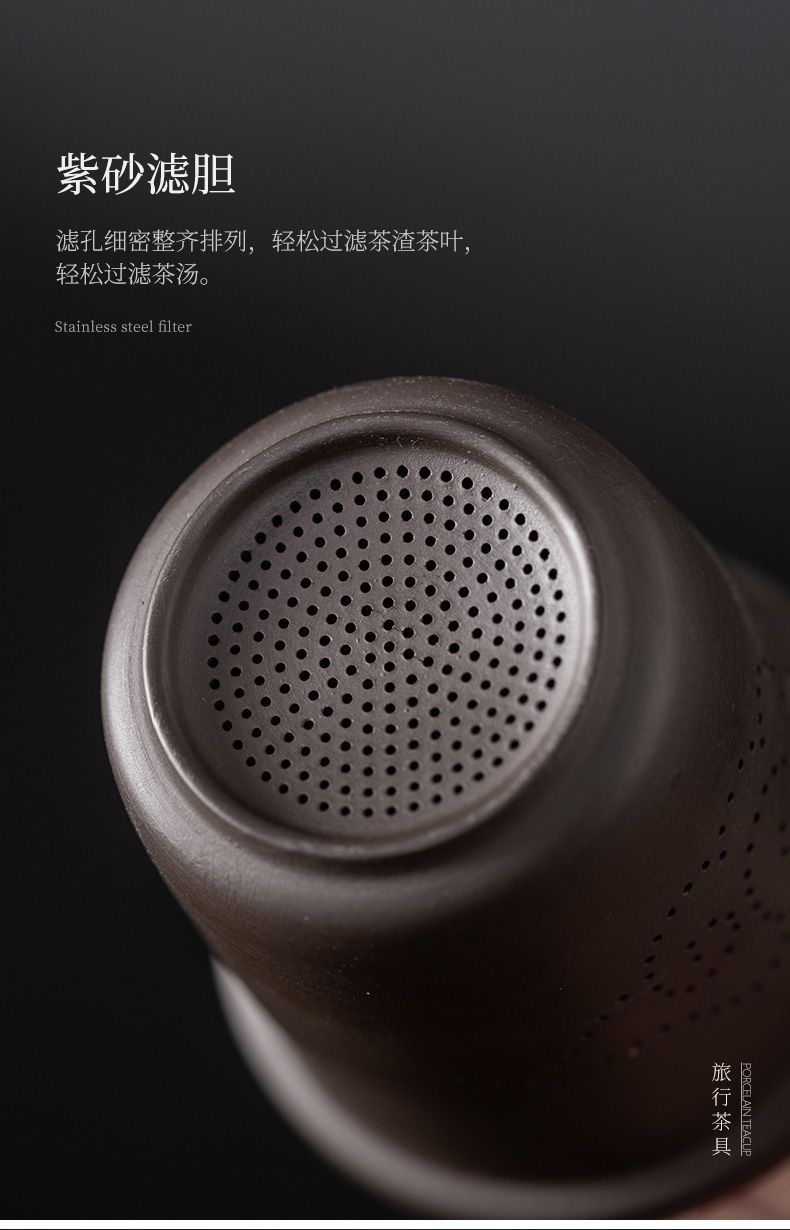 便携式旅行茶具一壶六杯家用户外旅游高档紫砂茶水分离防烫快客杯