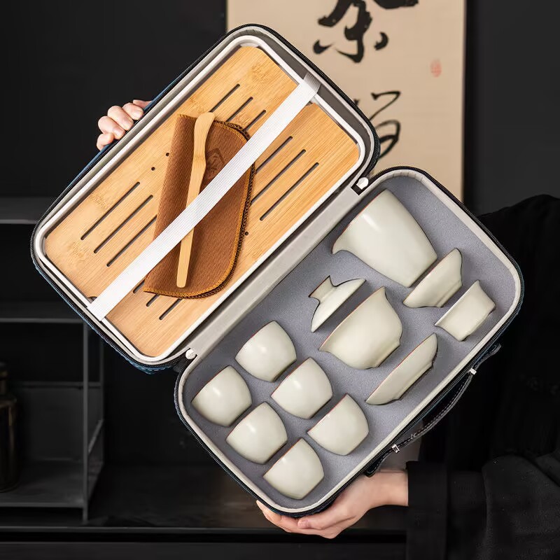 汝窑旅行茶具套装便携陶瓷快客杯一壶三杯公司活动端午节伴手礼品