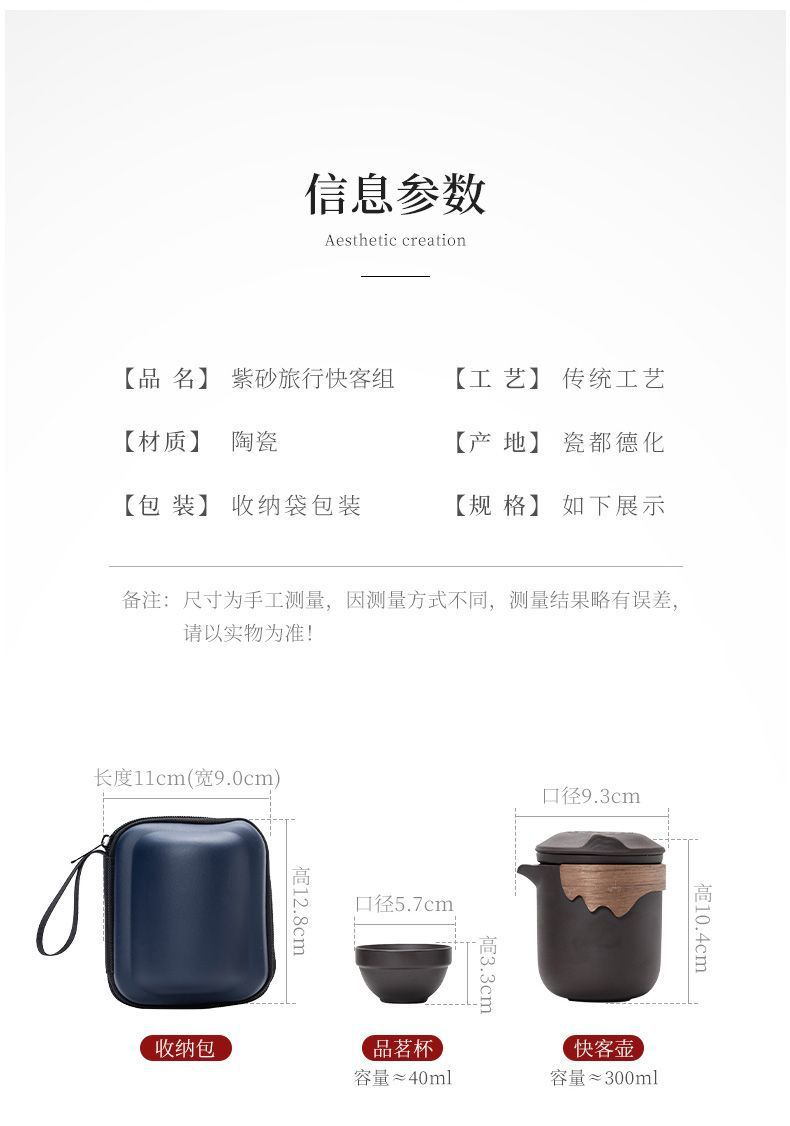 紫砂旅行ティーセット、ポット1個、カップ3個、屋外ポータブルティーセット、会社イベント、ビジネスギフト、クイックカップ、お土産