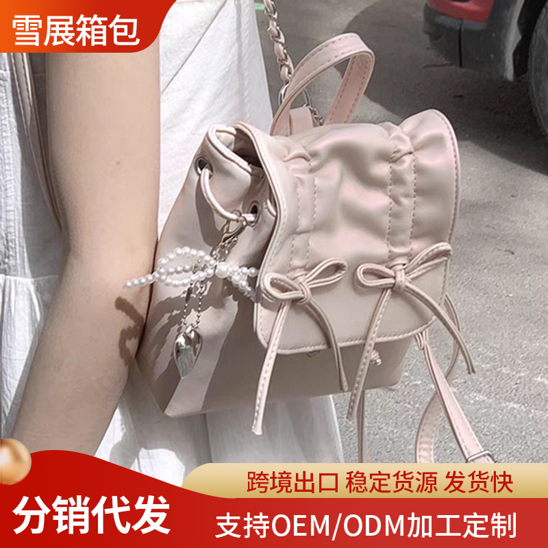 韩版ins蝴蝶结双肩包女2025春夏新款简约百搭旅行包手拎背包