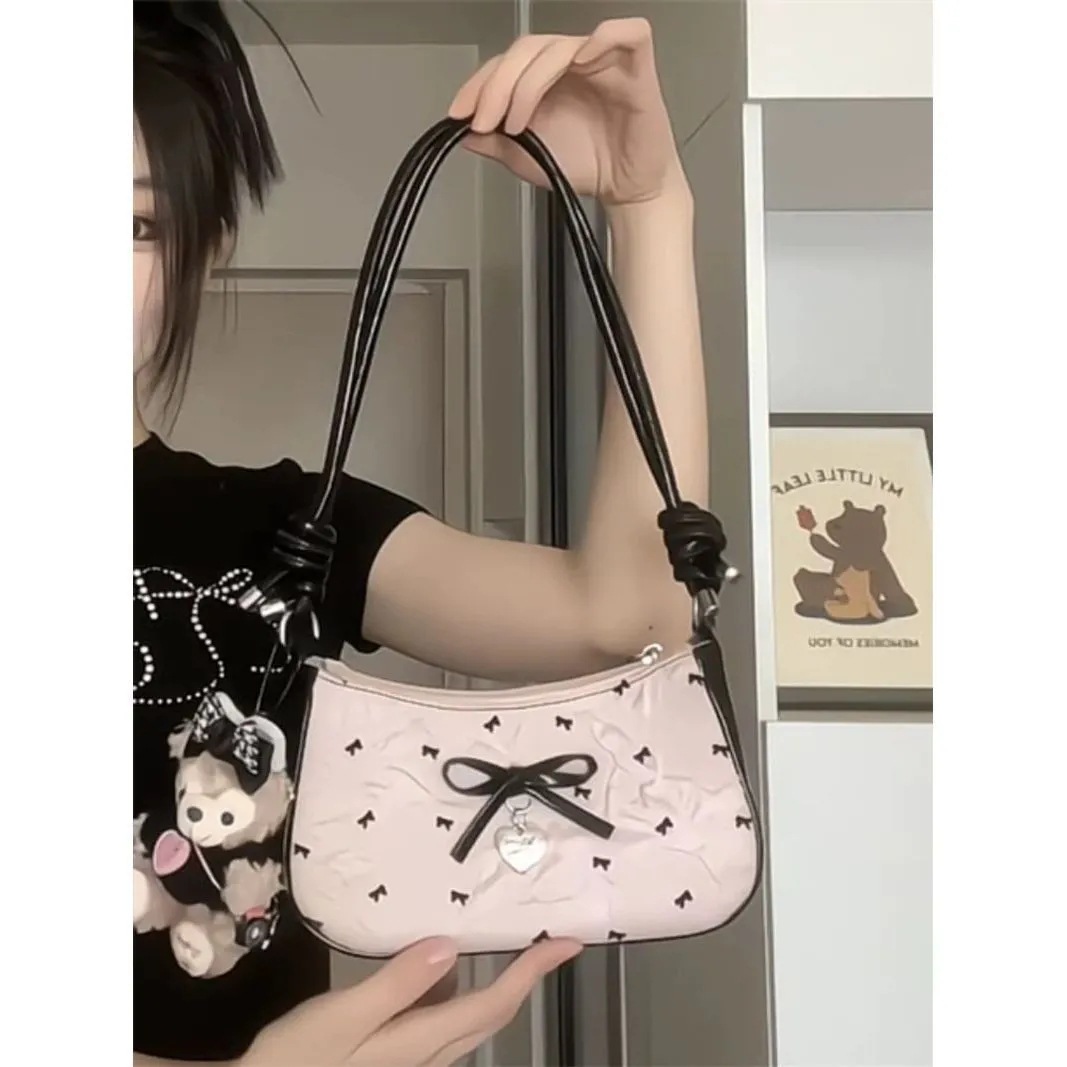 厂家生产 粉色蝴蝶结月牙腋下包女夏2025新款质感轻奢单肩小方包
