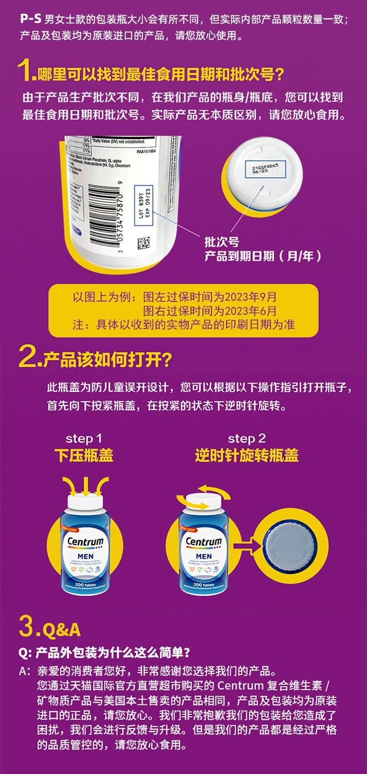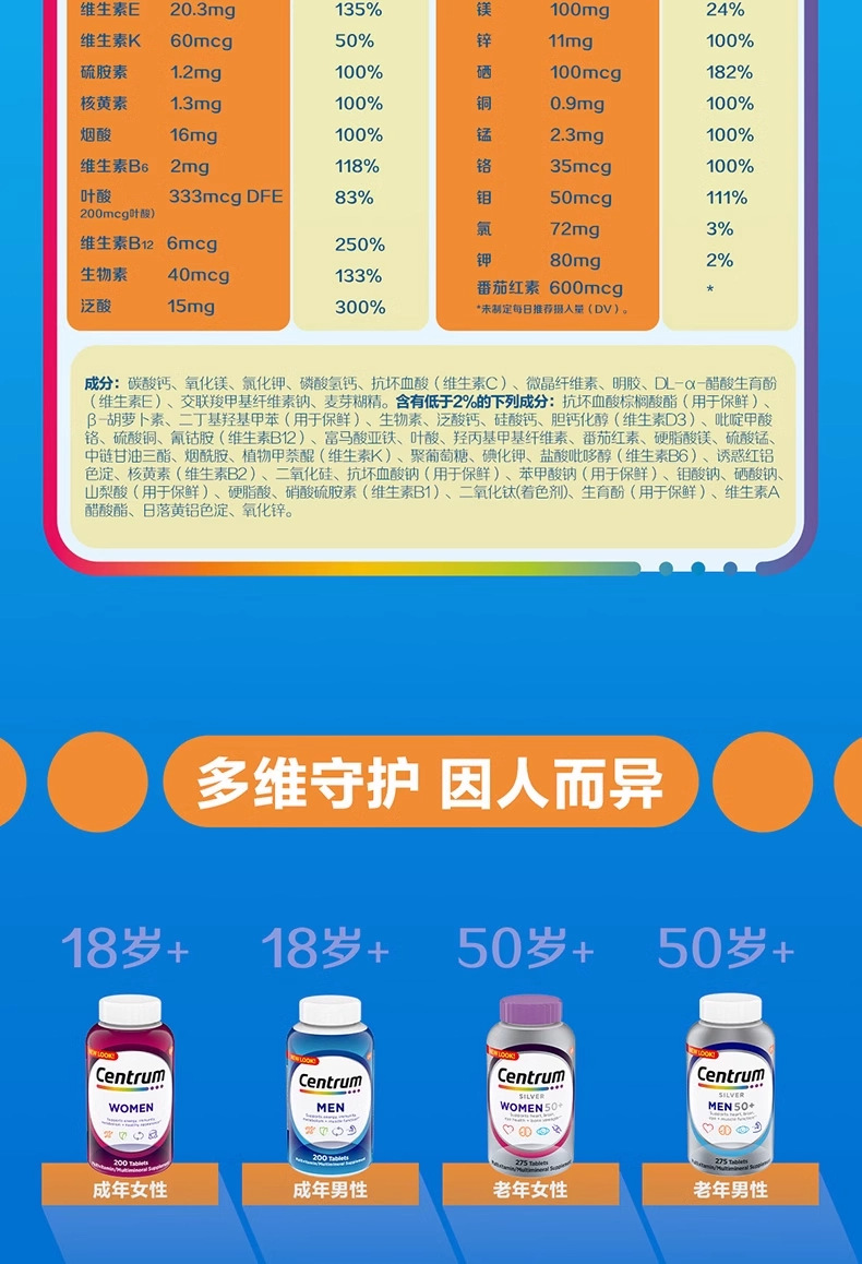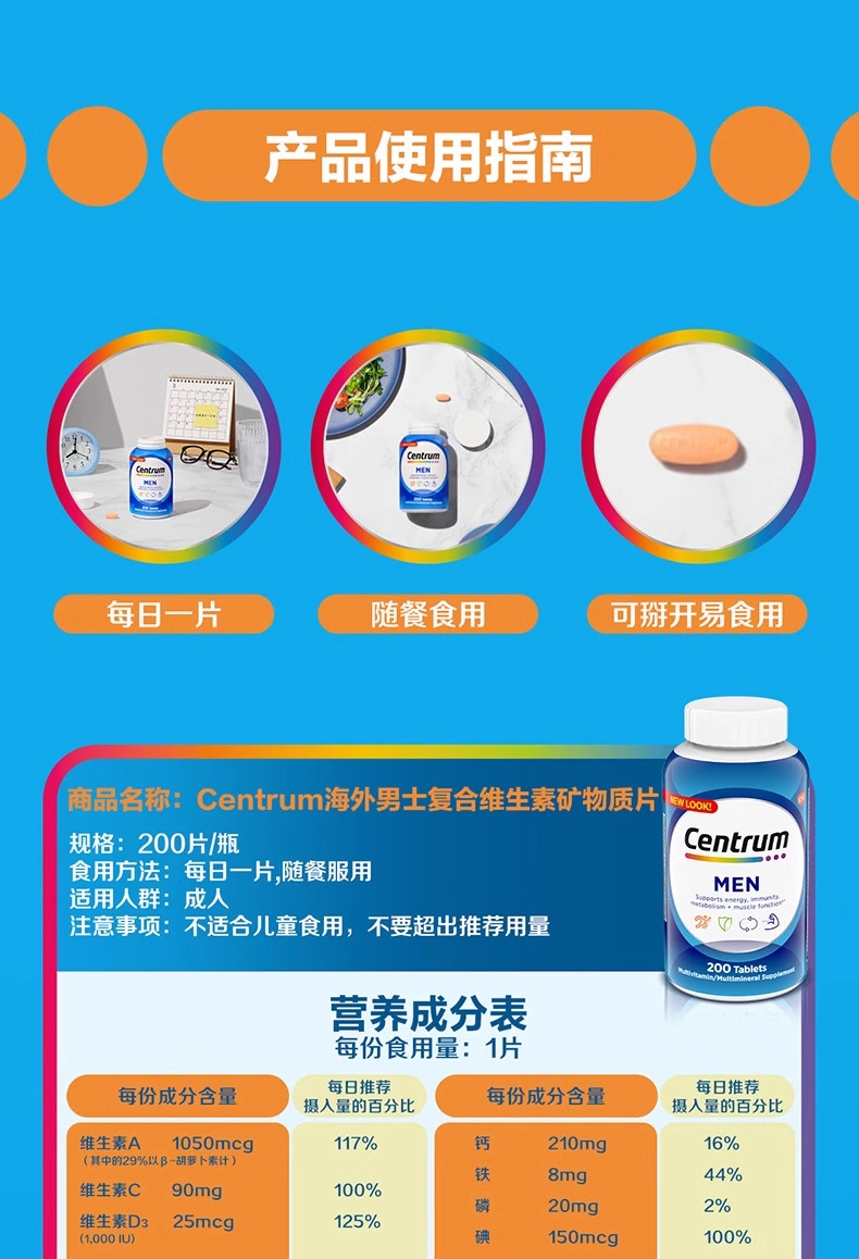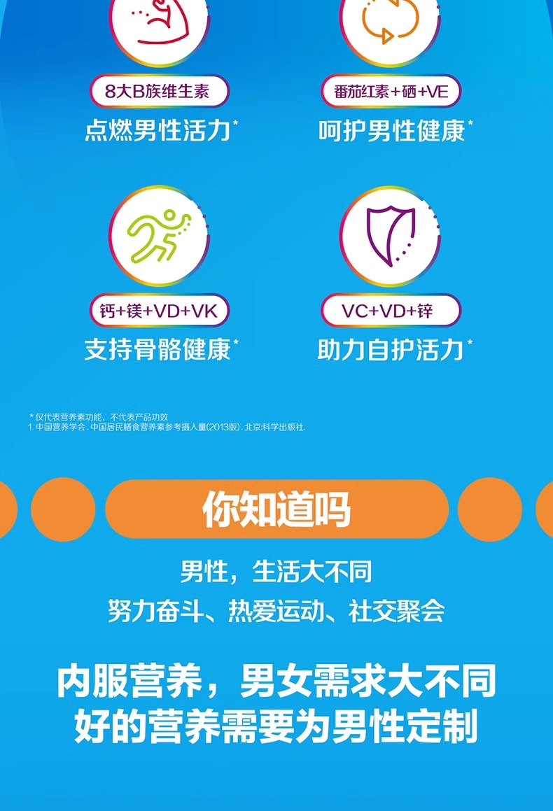 美国原装进口中老年男士复合维生素50岁矿物质片275粒