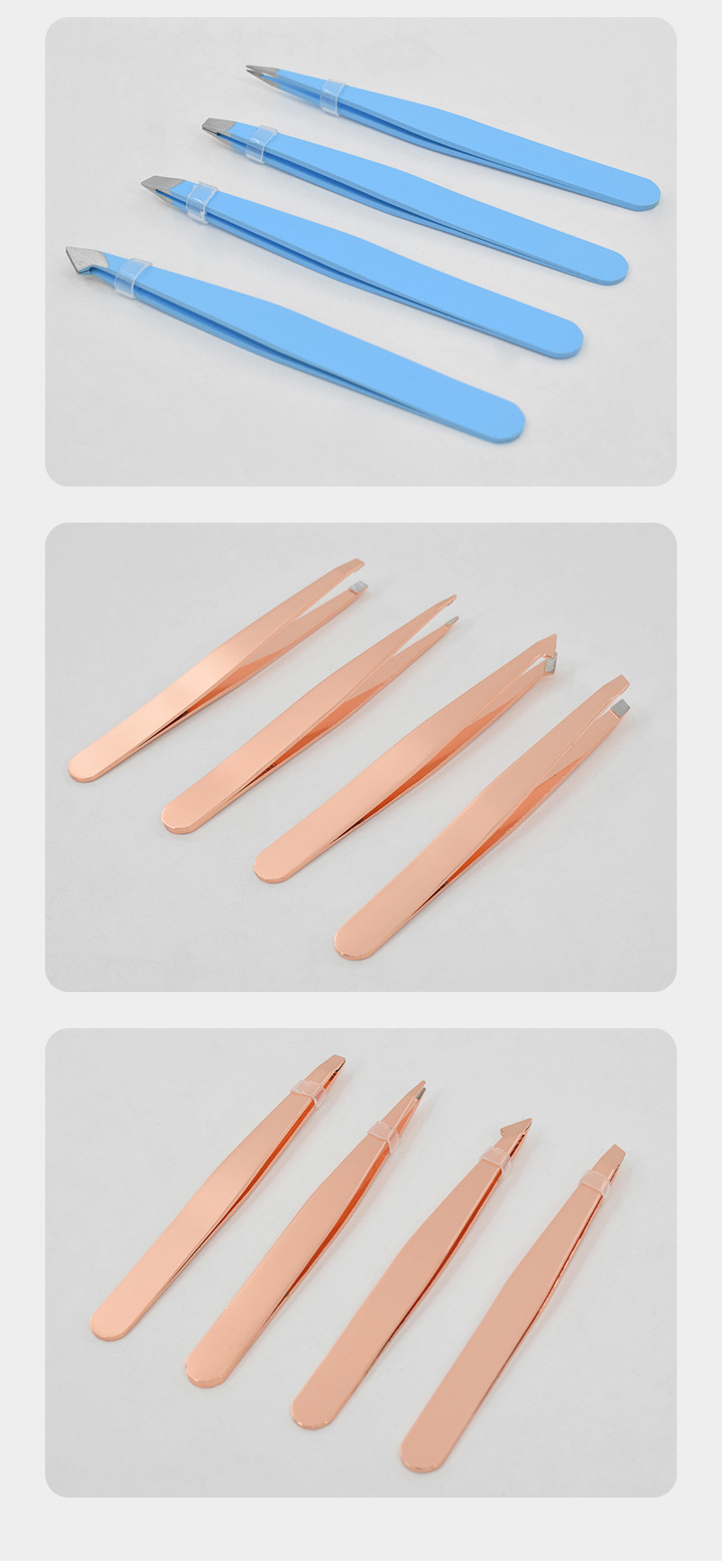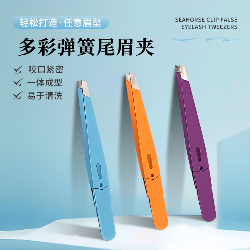カラフルなスプリングテール眉毛クリップステンレス鋼眉毛クリップピンセット斜め眉毛トリミングセット美容ツールは卸売でカスタマイズできます