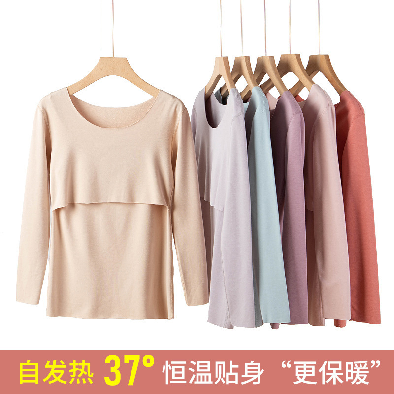 妊婦無痕哺乳秋衣加毛上着妊娠期秋冬パジャマ産後冬保温下着
