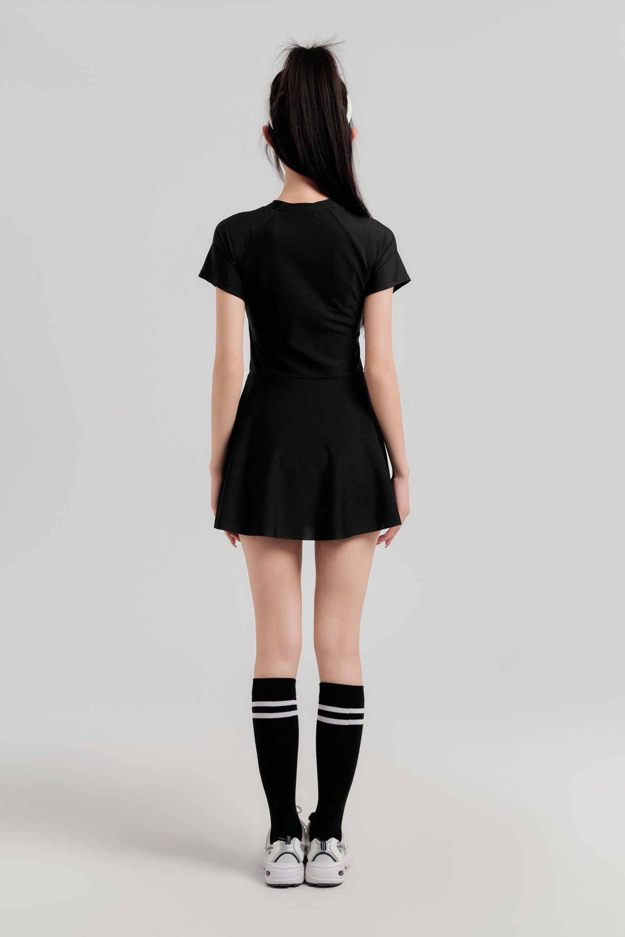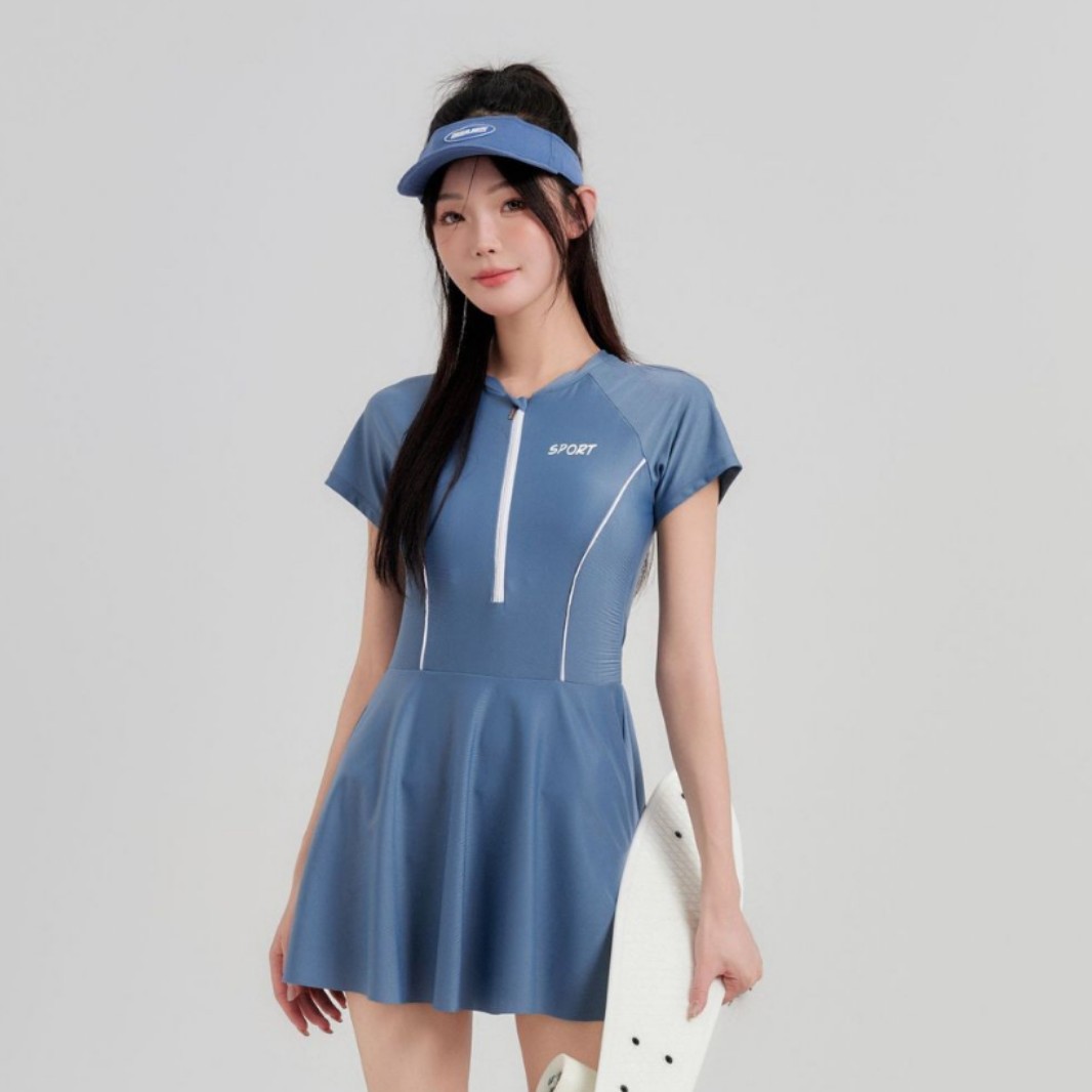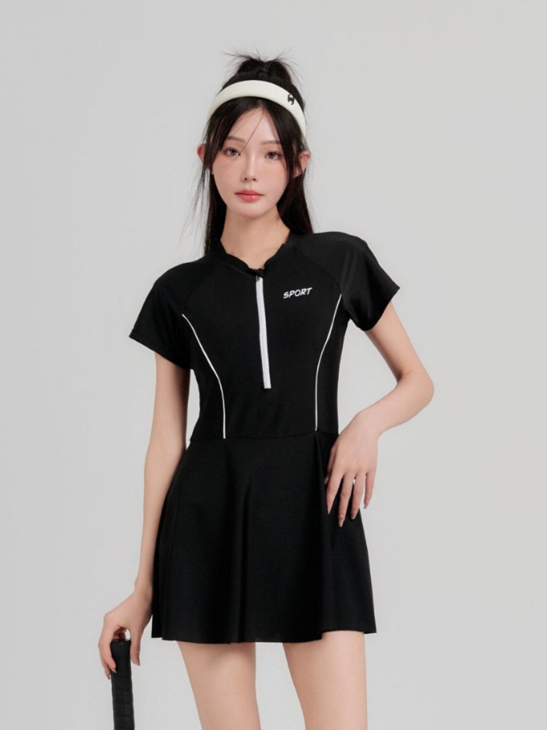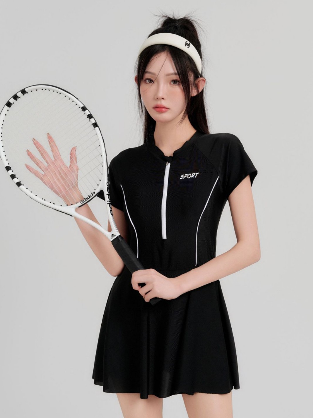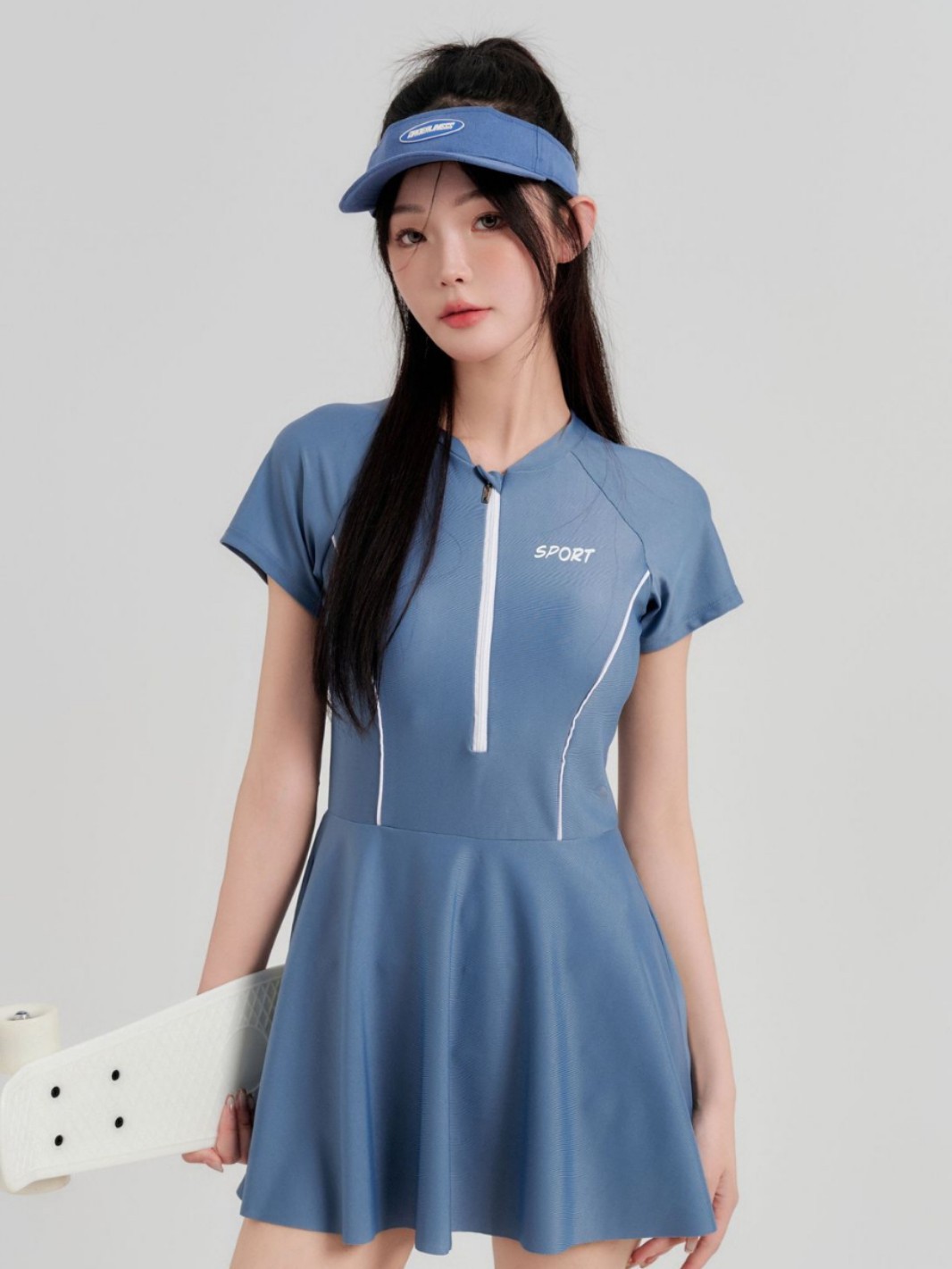 水着女性ワンピーススポーツ保守的な痩身カバーアップスカートスタイル学生温泉水着メーカー卸売無地ポリエステル