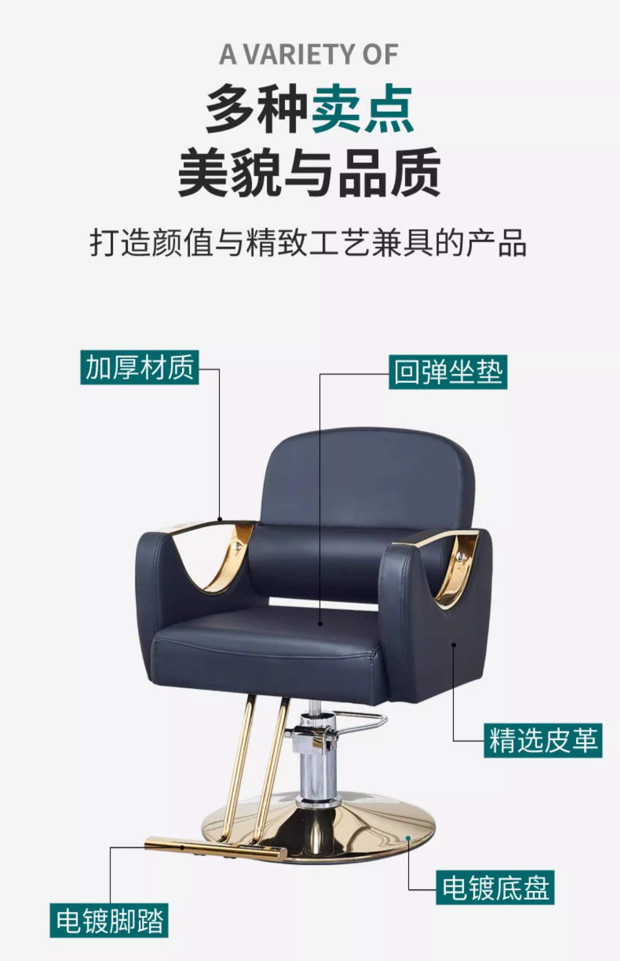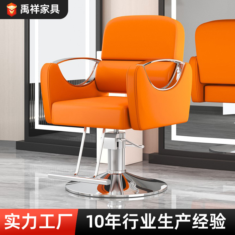 美发椅理发店网红升降旋转轻奢不锈钢可放倒凳子时尚剪发椅理发椅