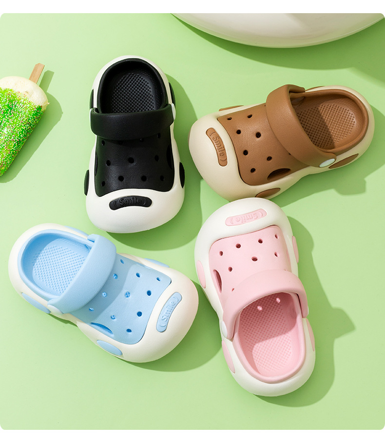 2025新型のどこが子供のスリッパ敖丙の子供の夏の家の日常の滑り止めの男女の子供の穴の靴を持ちますか?
