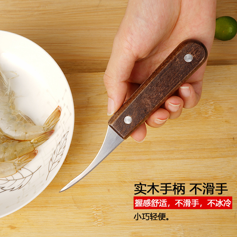 虾线剔除刀去虾线神器实木不锈钢厨房多功能剥虾壳挑鱼肠开虾背刀