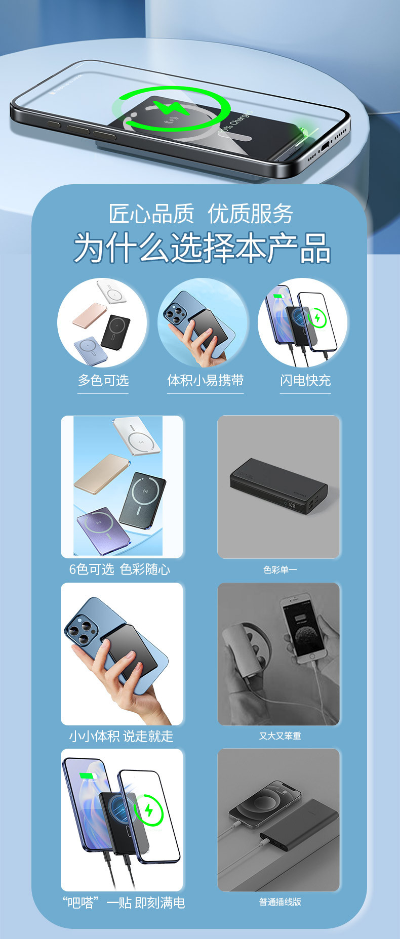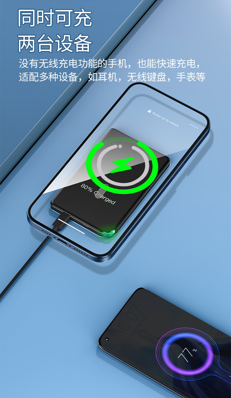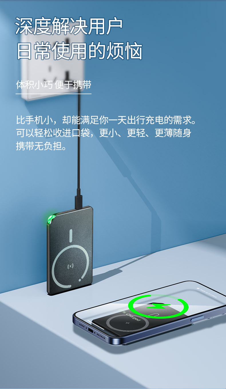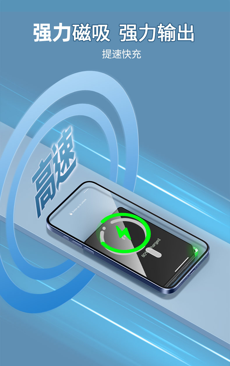 磁吸手机充电告别带充电线的繁琐,外出携带简单、方便。