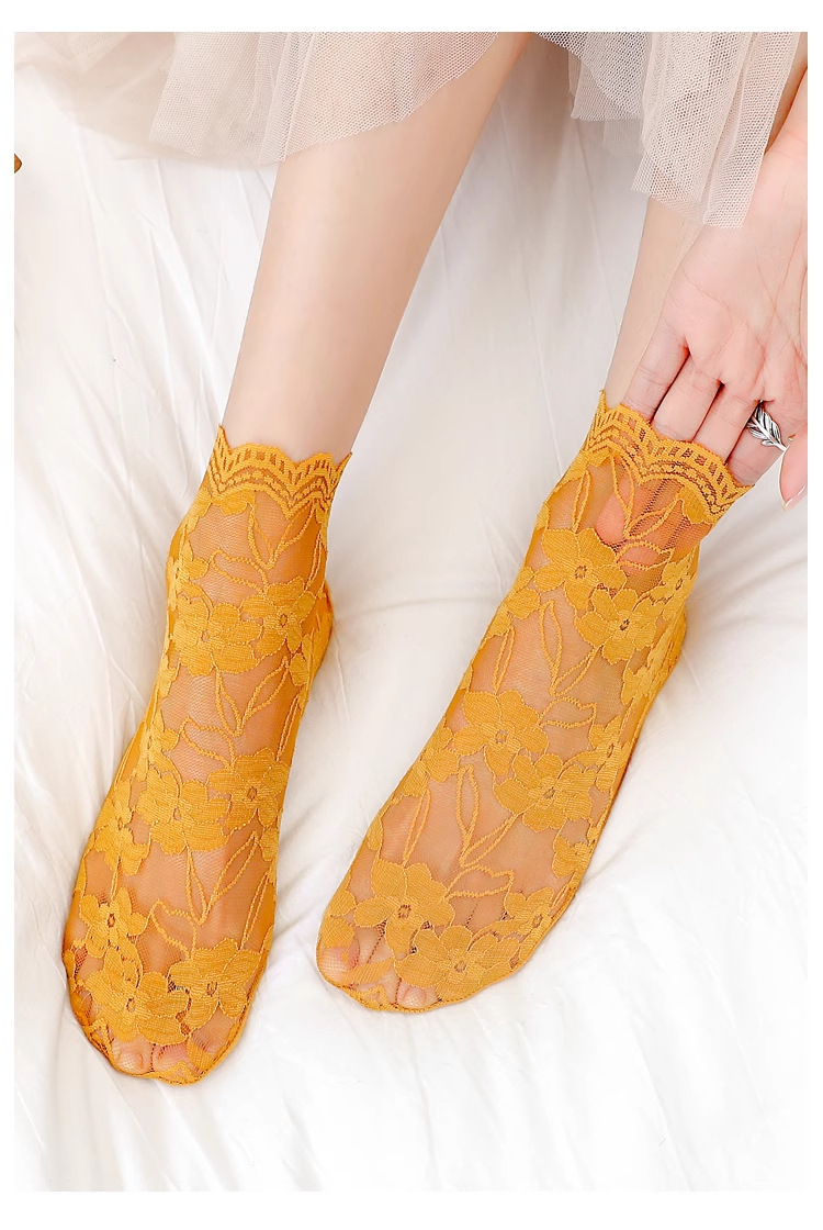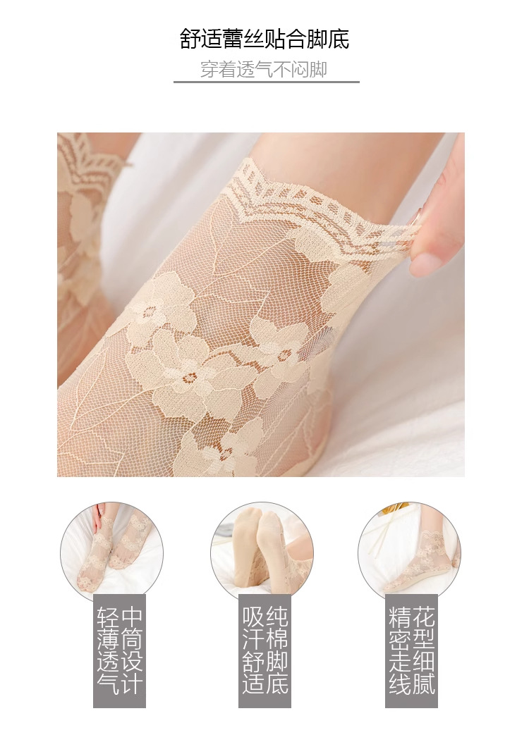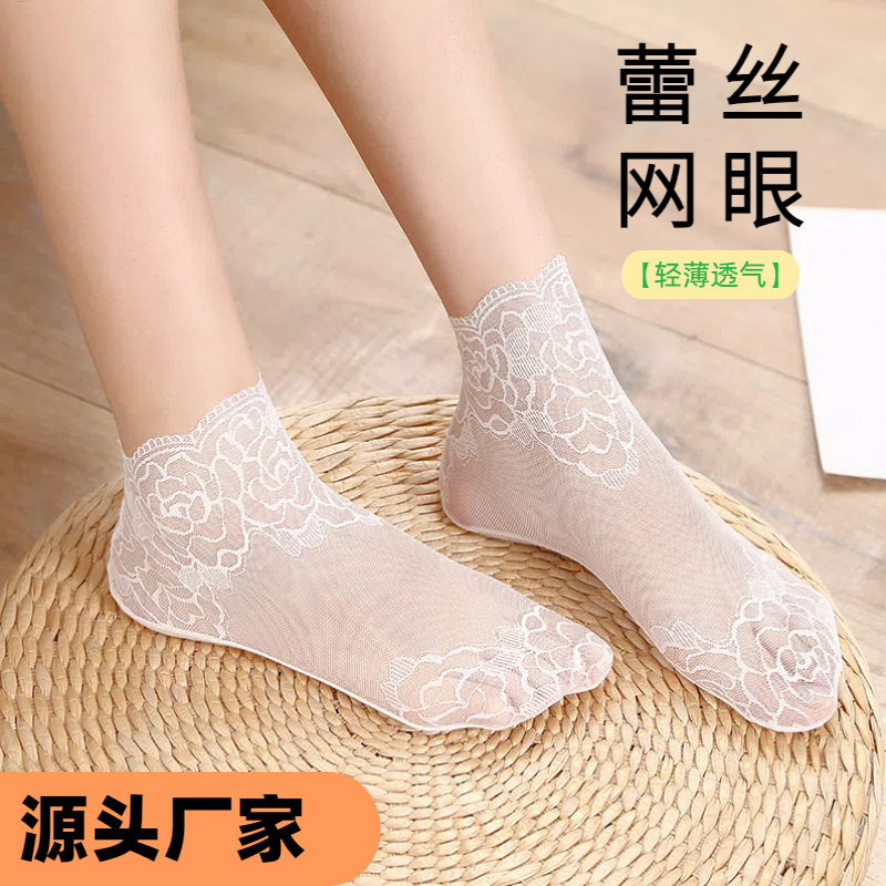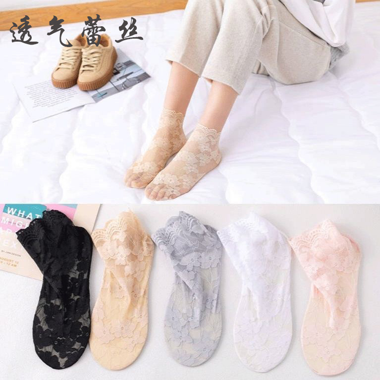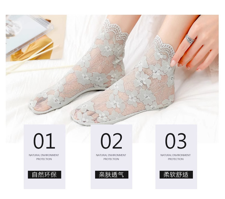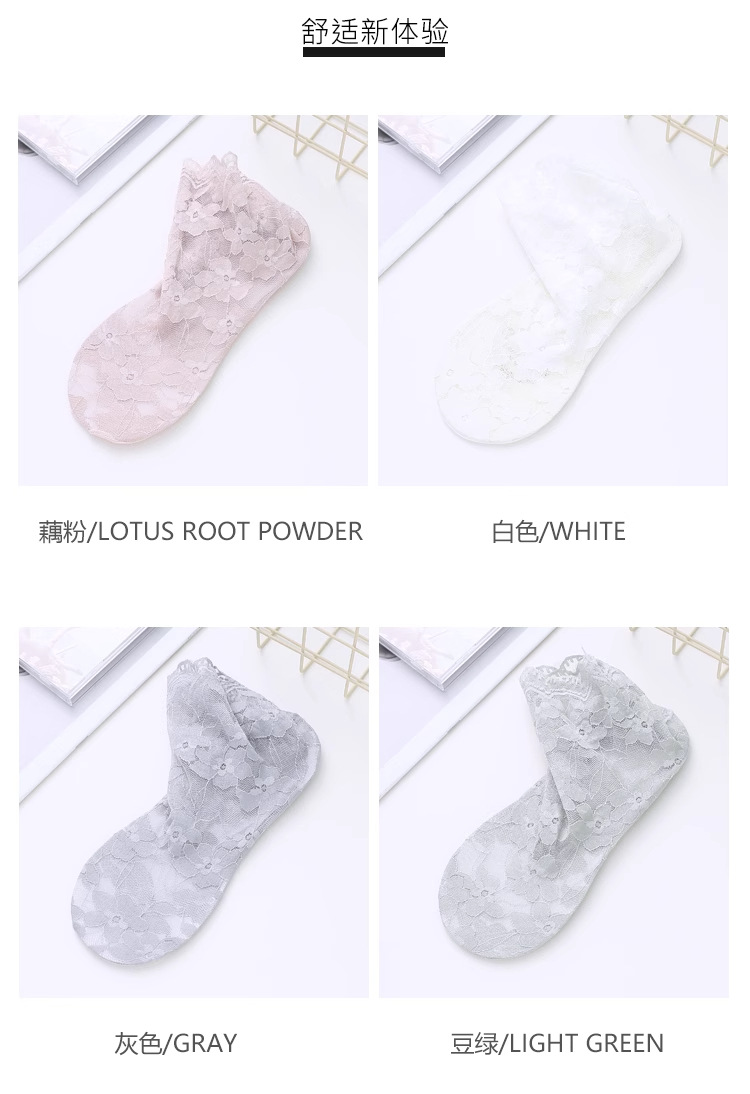 レースの靴下の女性の滑り止めと靴下の女性のソックスの夏の薄いタイプの透かし彫りのレースのショートソックスの女性の靴下の通気性の靴下