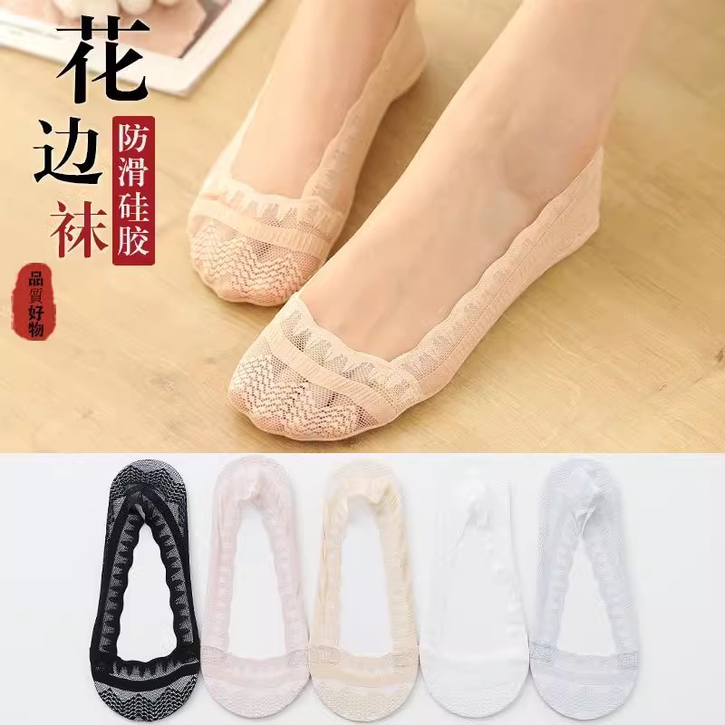 新しい女性の見えないレースのシーツの薄い靴下の女性のレースの船の靴下の透かし彫りの滑り止めの浅い女性の靴下