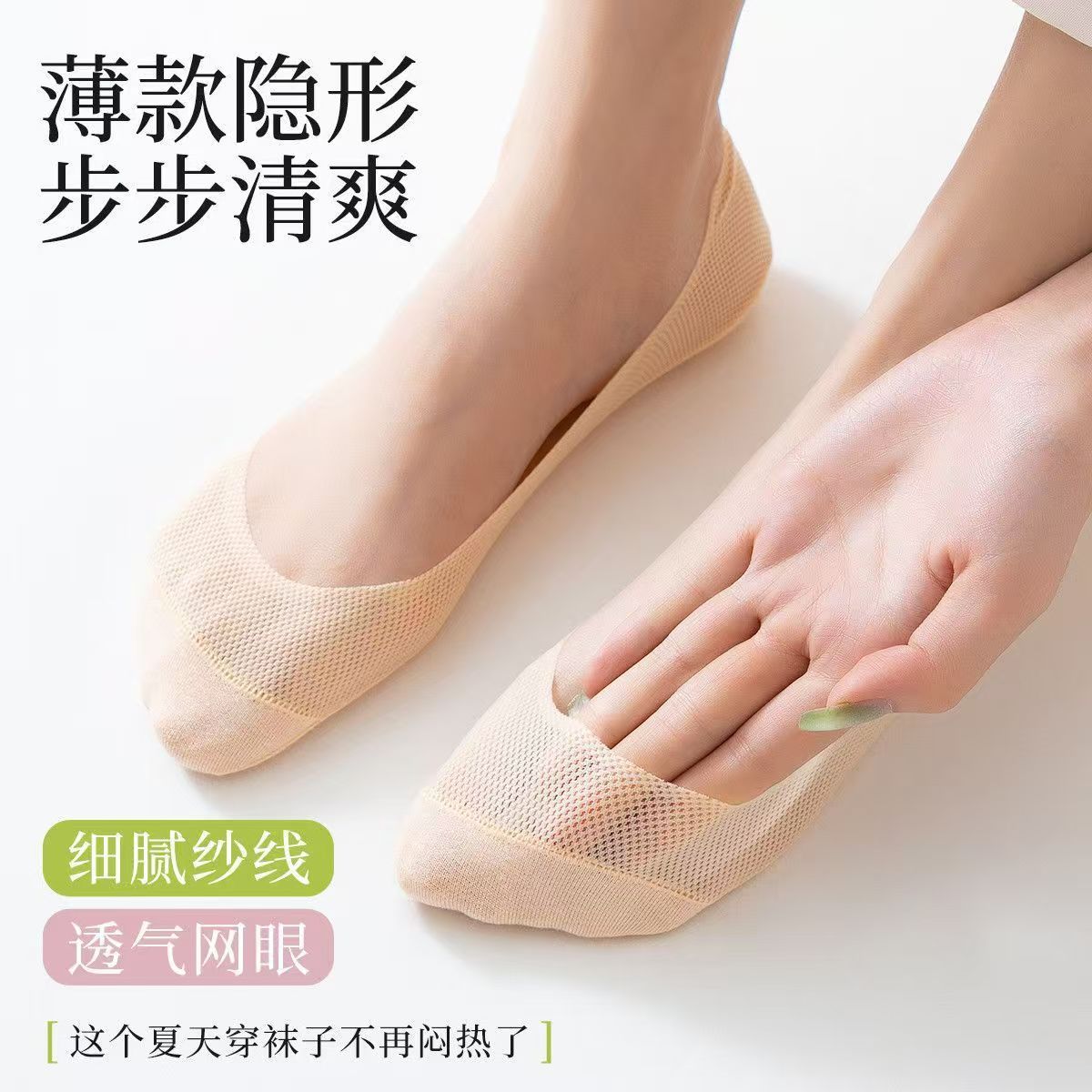 足の指の靴下の女性の春の夏の薄いタイプのシリコンの滑り止めの氷の糸の見えない5本の指の靴下の通気性は船の靴下と落ちません。