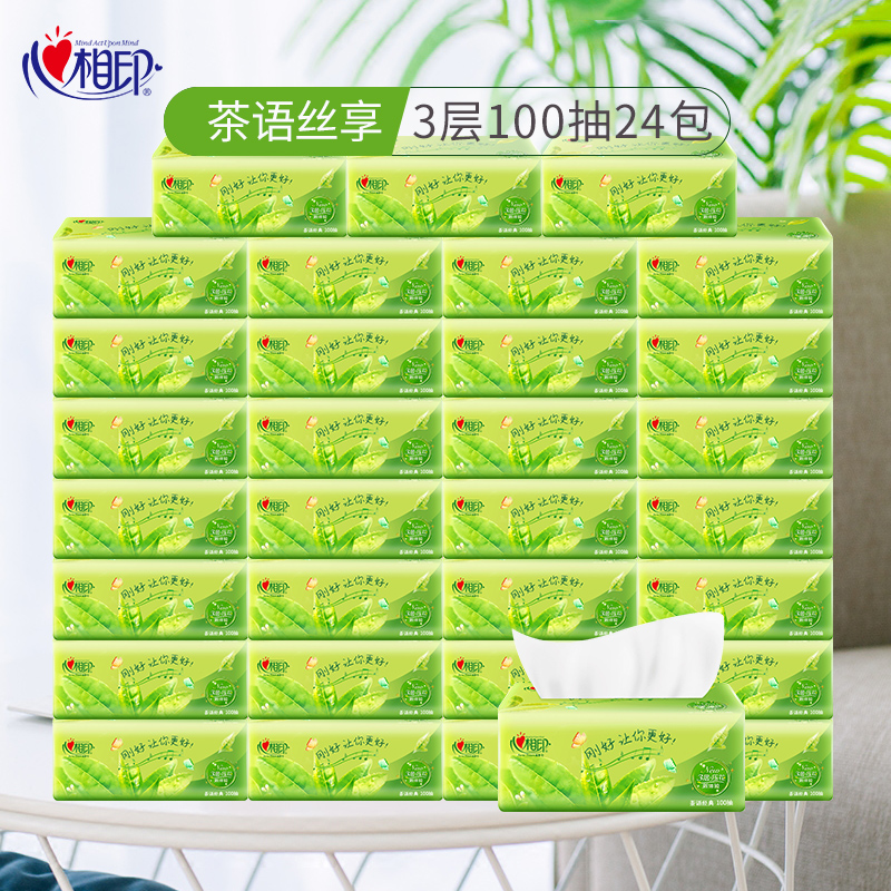 心相印抽纸茶语茶香家用实惠装面纸巾心心相印餐巾纸整箱卫生纸抽