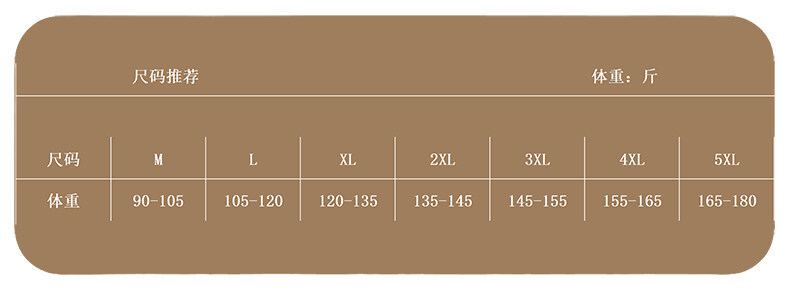エム(40-52.5kg),エル(52.5-60kg),XL(60-67.5kg),2XL(<67.5-75kg)),3XL (75-82.5kg 個),4XL (82.5-85kg ポンド),5XL (85-90kg パンチ)