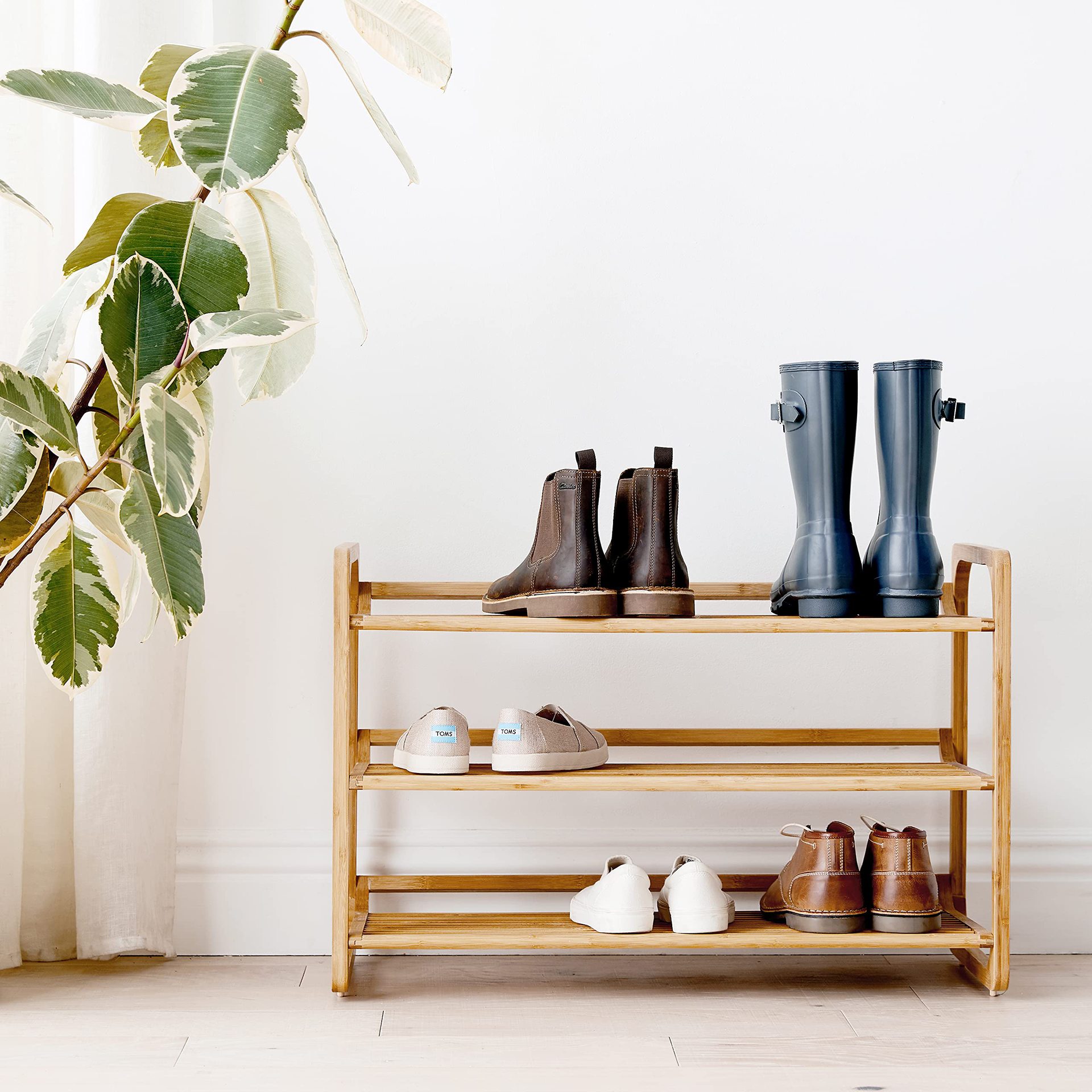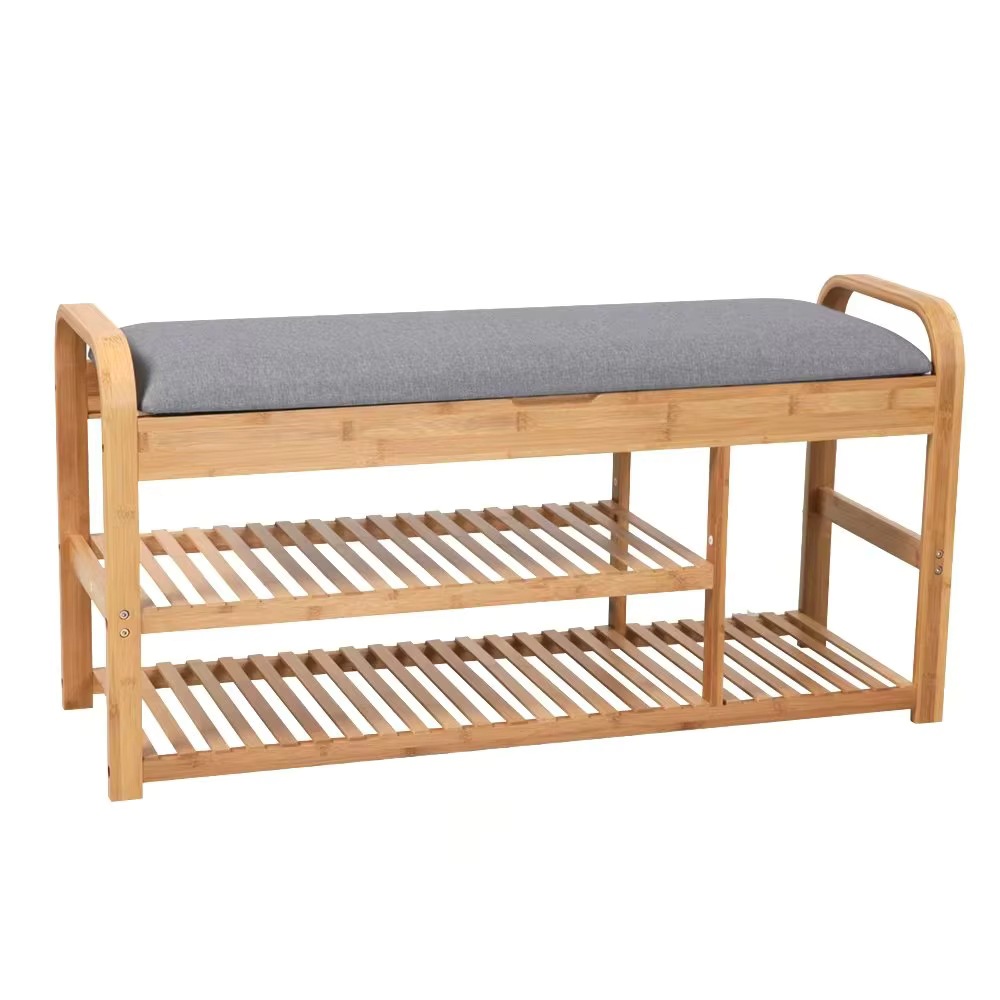 走廊竹子三层鞋架客厅鞋凳中的天然鞋子储物