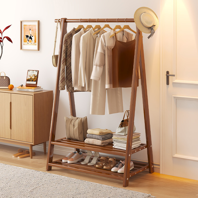 多層コートラック、フロアラック、シンプルな寝室用衣類ラック、多目的無垢材の厚みのある垂直衣類乾燥ラック