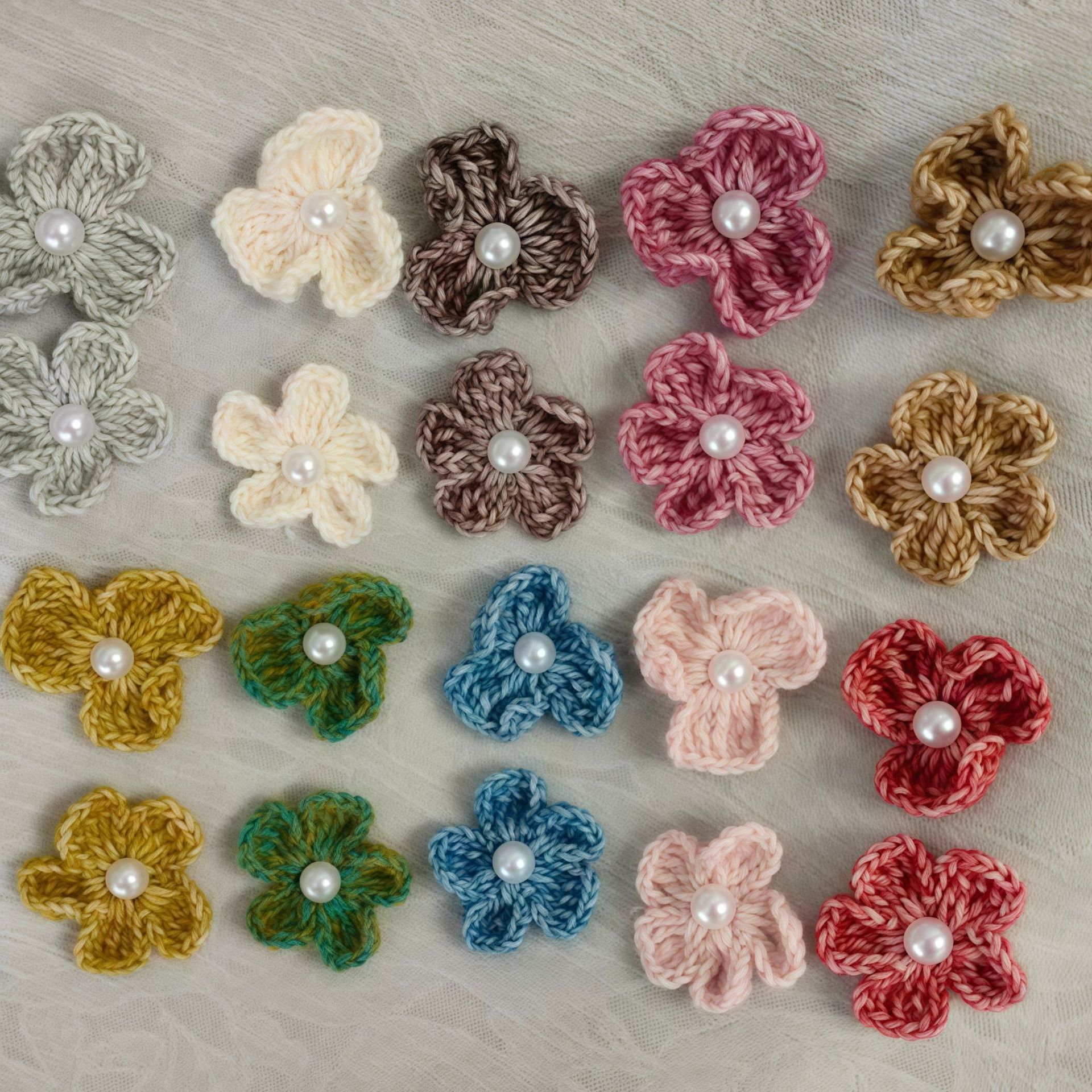 手工钩织毛线花编织五花瓣发饰配件点钻花芯衣服包包辅料礼盒装饰